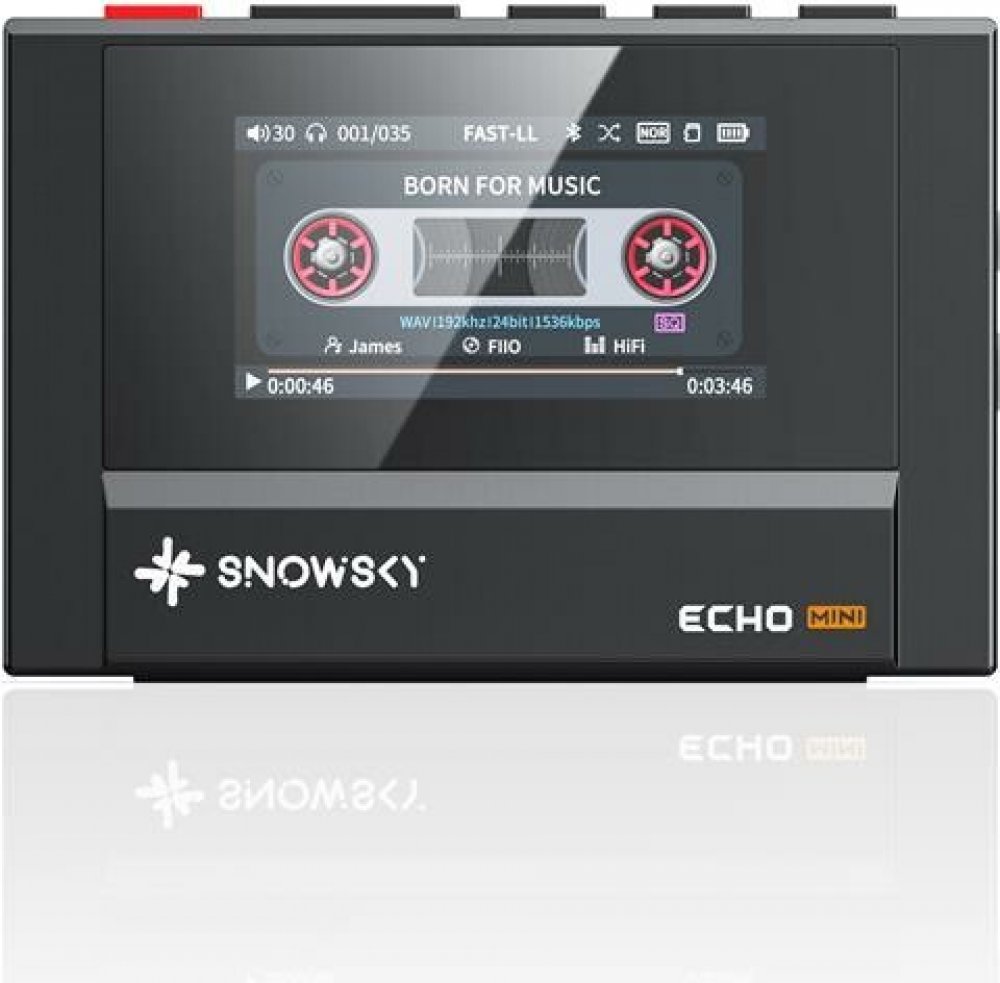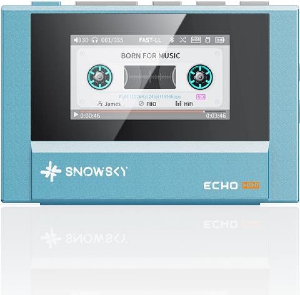 FiiO Echo Mini oživuje vzpomínky na walkmany – na 2ʺ barevném IPS displeji běží animované UI s rotující páskou, takže u každé skladby vidíte „cívky“ v akci. V hliníkovém těle o hmotnosti pouhých 55 g najdete 8 GB interní paměti pro rychlý přístup k oblíbeným albům a slot pro microSD až 256 GB, takže se na cesty vejde celá vaše sbírka. Vestavěná baterie 1100 mAh vydrží přes 15 hodin přehrávání – ideální společník na denní dojíždění i víkendové výlety.Dvojitý DAC, symetrický výstup a Bluetooth 5.3