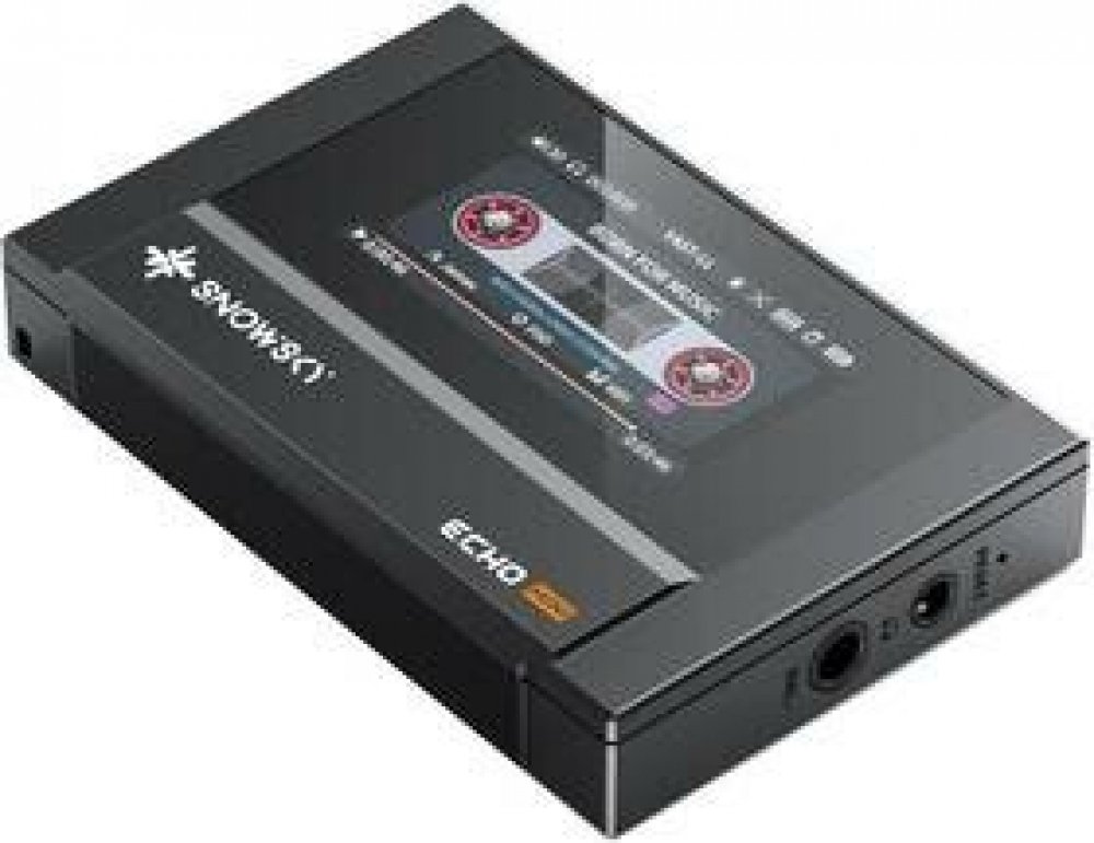 Dva čipy CS43131 se samostatným napájením posílají až 250 mW na symetrickém 4,4 mm jacku (nebo 100 mW na klasickém 3,5 mm), takže Echo Mini snadno rozhýbe i náročnější sluchátka. Přehraje DSD256, 24/192 kHz WAV/FLAC a přes Bluetooth 5.3 (kodek SBC) se bleskově spáruje s bezdrátovými repráky či sluchátky. Díky nezávislým oscilátorům a šumu pod 0,8 µV hraje čistě, detailně a s dynamikou 131 dB, která vtáhne do hudby naplno.Specifikace:Hmotnost: 55 gRozměry: 80 × 54,5 × 14,5 mmDisplej: 1,99″ barevný IPSDAC: 2 × CS43131Úložiště: 8 GB + microSD do 256 GBBluetooth verze/kodek: 5.3 / SBCPodporované formáty: DSD64-256, WAV a FLAC 24/192 kHz, APE 24/96 kHz, MP3, M4A, OGGVýstupy: 3,5 mm single-ended, 4,4 mm symetrickýVýkon 3,5 mm: ≥ 100 mW + 100 mW @ 32 Ω (THD+N < 1 %)Výkon 4,4 mm: ≥ 250 mW + 250 mW @ 32 Ω (THD+N < 1 %)SNR: ≥ 131 dB (A-váž.)THD+N: 0,0004 %Šumové dno: 0,8 µVBaterie: 1100 mAh Li-ion, výdrž > 15 h, nabíjení USB-CObsah balení: Echo Mini, USB-C kabel, rychlý návod, záruční karta