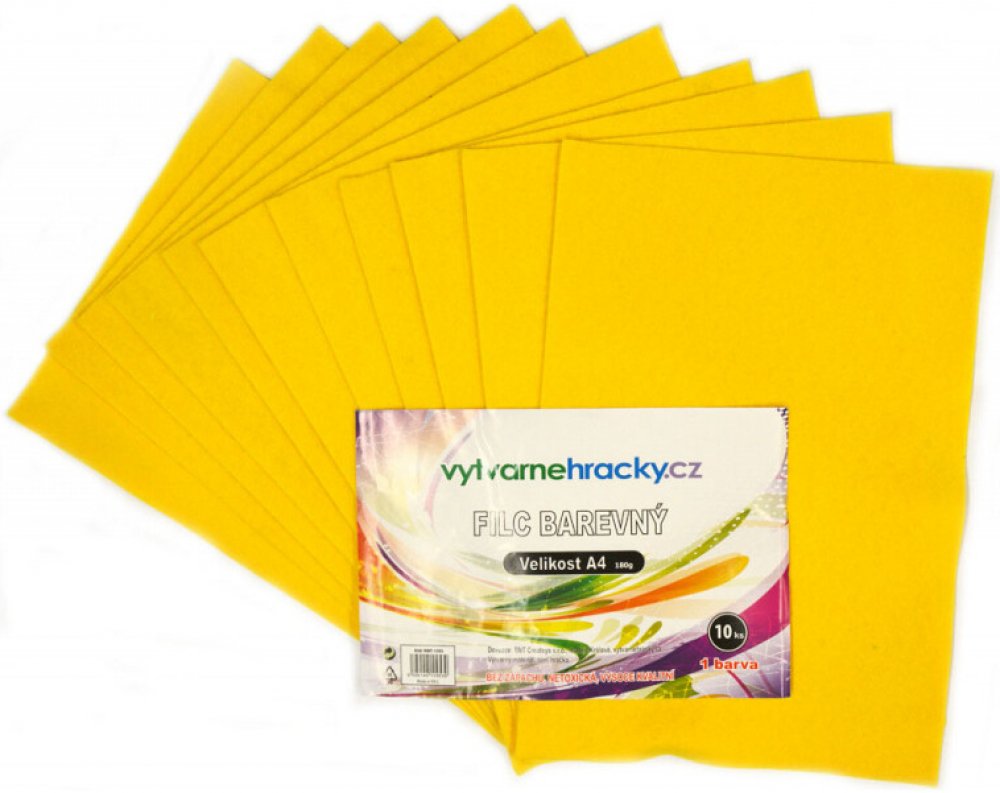 Materiál vhodný pro dekorování, plstění, výrobu hraček, loutek, maňásků atd. Oblíbené pro tvoření ve školkách, školách. Barva: světle žlutá Formát: A4 Tloušťka: 180 g/m2 Počet ks v balení: 10 Zakupte produkt Filc A4 180g - světle žlutý, 10 ks z kategorie Výtvarné potřeby | Kreativita | Látkové dekorace, plsť - filc | Archy, role od výrobce vytvarnehracky.cz za cenu 62 Kč.