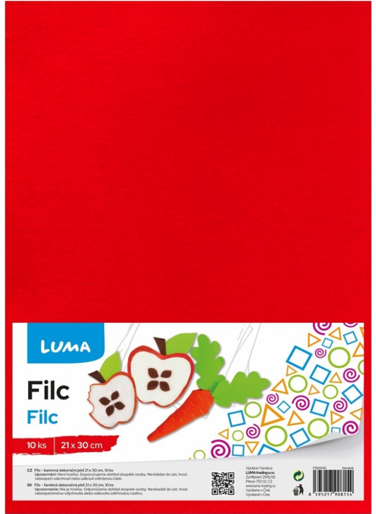 Filc Luma A4, červený 10ks