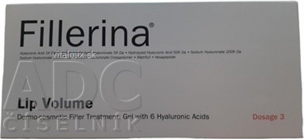 Gelová péče s vyplňujícím účinkem podporuje zvětšení objemu rtů. Složení se skládá z 6 molekul kyseliny hyaluronové o různých molekulových hmotnostech a velikostech a tím zajistí působení přípravku Fillerina rychleji proniknout do rtů, vyplnit je a zvětšit. Produkt je dostupný v jedné koncentaci – stupeň 3 pro nejlepší efekt.