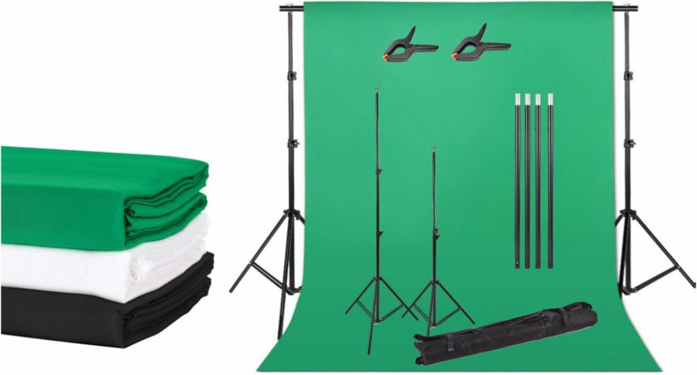 Výhodný set obsahuje 3 x fotografické pozadí 3 x 1,5 metry. Dále samotná konstrukce na fotopozadí (3 x 2 metry) - šířka x výška. Součástí jsou i dvě svorky pro pevné uchycení. Materiál fotografické plátna je Dacron. Není to tedy 100% bavlna, protože je set o tolik cenově výhodnější. Výhoda Dacronu je, že je levnější než bavlna, ale není to zkrátka 100% bavlna. V praxi byste zásadní rozdíl pocítit neměli, bavlna je příjemnější na dotek a vydrží v podstatě déle.Níže uvedené video ukazuje unboxing tohoto konkrétního produktu, svorky se však liší, balení obsahuje svorky viz 1. produktová fotografie.