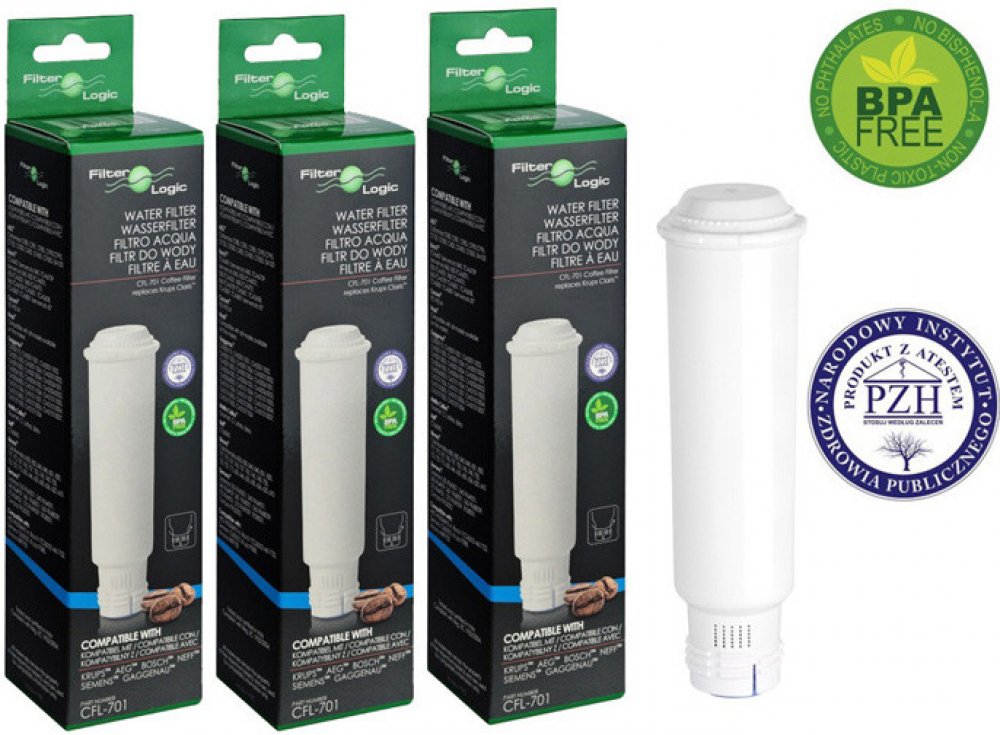 Profesionální vodní filtr FilterLogic CFL-701B pro espresso kávovary Krups™ a další značky. Poskytuje nejkvalitnější filtraci. Díky němu si můžete vychutnat skvělou chuť kávy a zároveň chránit přístroj před vodním kamenem.