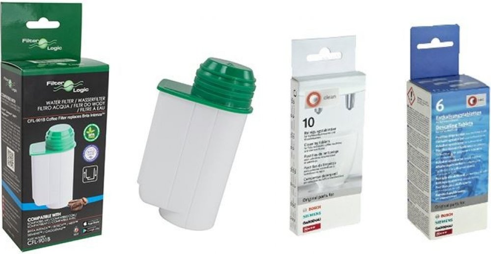 Vodní filtr CFL-901B vysoké kvality zabraňuje usazování vodního kamene a slouží jako náhrada za filtr Brita Intenza TZ70003. Životnost filtru jsou dva měsíce a nebo 60 litrů přefiltrované vody. Po splnění jedné z těchto podmínek je nutné filtr vyměnit. Technické údaje:• splňuje normu EU 1935/2004;• certifikované NIZP NIH (National Institute of Public Health);• neobsahuje BPA (Bisfenol A). Kompatibilní s kávovary:• Bosch™: VeroProfessional, VeroBar, TCA7xx Series (všechny modely), TCC7xx Series (všechny modely), TCC78xx (všechny modely), K750, TES70, C77V60, CV7760N• Siemens™: TK76K572GB, TK76009GB, EQ7 Plus, TE703201RW, TE706209RW• Neff™: Neff TK7 Series, Neff EQ7, Neff CV7760N, Nef CV77V60, Vero Professional, TE50, TE70, TES70• Gaggenau™: CM250TCZ6002 Bosch / Siemens odvápňovací tablety do kávovarů (6 x 18 g tbl.) a rychlovarné konvice, odstraňují vodní kámen a různé jiné usazeniny. Tablety rozpouští nežádoucí sedimenty v zařízeních, ve kterých je použita voda z vodovodního řádu včetně kávovarů, čímž dochází k ochraně a prodloužení životnosti zařízení. Tablety jsou vhodné pro všechny kávovary Bosch (plnoautomaty Surpresso, Benvenuto). Bosch / Siemens TCZ8001 čisticí tablety do kávovarů (10 x 2,7 g tbl.) jsou vhodné pro automatické kávovary. Tablety prodlužují životnost přístroje díky lepšímu odstranění mastnoty z kávových zrn ze spařovací jednotky. Pravidelné čištění kávovaru napomáhá udržet skvělou chuť a aroma kávy. Poznámka:• Přesný popis použití tohoto výrobku naleznete v návodu svého přístroje.• Čistící tablety jsou pod produktovým označením: 311940, 311769, 311771, 311770, 310655, 311560, 310575, TZ6001, TCZ6001, TZ8001, TCZ80001, TZ60001, TCZ60001. Jedná se však o stejný výrobek. (viz. změna obalu) Upozornění:• Tablety nejsou vhodné pro tyto typy kávovarů: TCA52/TCA53 Benvenuto Classic a TK52/TK53 Surpresso Compact.Přesný popis použití tohoto výrobku naleznete v návodu svého přístroje.Součástí balení je 1 ks Filter Logic CFL-901B + TCZ6002 Bosch odvápňovací tablety 6 ks + 1 ks Bosch / Siemens TCZ8001.Bezpečnostní zdroje FilterLogic, Warwick Road, Fairfield Industrial Estate Louth, Lincs LN11 OYB, United Kingdom.Tel.: 01507 608 100, E-mail: sales@filterlogic.eusummary::-webkit-details-marker { display: none; } summary::marker { display: none; }
