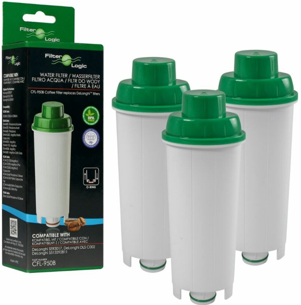 Profesionální vodní filtr FilterLogic CFL-950B pro espresso kávovary DeLonghi™. Poskytuje nejkvalitnější filtraci a dokonale se hodí do vašeho zařízení. Díky němu si užijete skvělou chuť kávy z kávovaru a zároveň ochráníte přístroj před vodním kamenem.