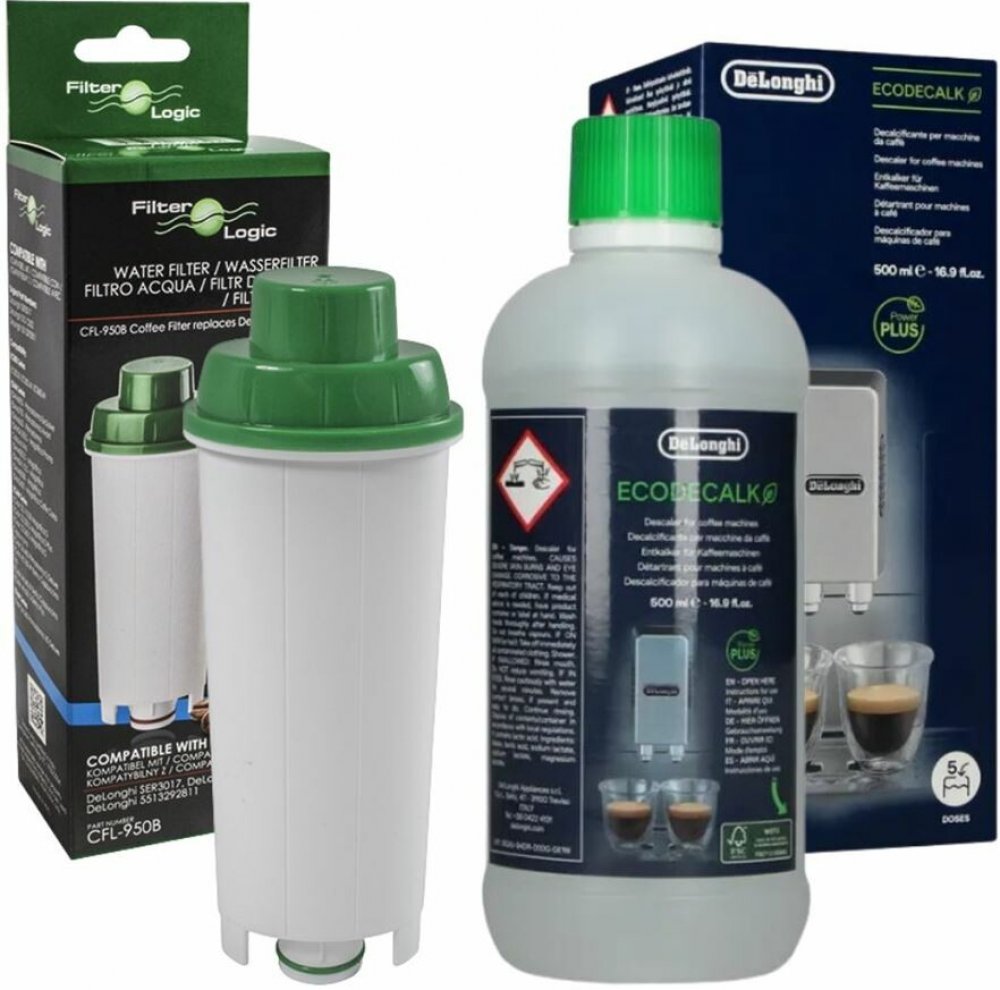 Vodní filtr do kávovaru FilterLogic CFL-950B Vodní filtr zabraňuje usazování vodního kamene a slouží jako náhrada za originální filtr DeLonghi DLS C002. Životnost filtru jsou dva měsíce a nebo 50 litrů přefiltrované vody. Po splnění jedné z těchto podmínek je nutné filtr vyměnit. Filtr do kávovaru je kompatibilní s kávovary: DeLonghi™: SER3017, DeLonghi™ DLS C002, DeLonghi™ 551329281 1. Série EC800: EC820.B, EC850.M, EC860.M. Série ESAM: ESAM6900 - Primadonna Exclusive, ESAM6700 - Primadonna Avant, ESAM6620 - Primadonna, ESAM04.350.S - Magnifica Pronto Cappuccino, ESAM4200.S - Magnifica, ESAM04.110.S - Magnifica, ESAM4000B - Magnifica, ESAM2600 - Magnifica Caffe Corso. Série ECAM: ECAM 22.110.Sb Magnifica S, ECAM 22.320.S Magnifica S Plus, ECAM 22.360.S Magnifica S Cappuccino, ECAM 26.465 Primadonna S Deluxe, ECAM 45.760.W Eletta Cappuccino Top, ECAM 44.660.B Eletta Cappuccino, ECAM 44.620 S Eletta Plus. Série ETAM: ETAM 36.365 Primadonna XS Deluxe. Technické údaje filtru do kávovaru: splňuje normu EU 1935/2004; certifikované NIZP NIH (National Institute of Public Health); neobsahuje BPA (Bisfenol A). DeLonghi EcoDecalk 500 ml odstraňovač vodního kamene Špičkový ekologický přípravek do manuálně ovládaných i automatických kávovarů. EcoDecalk je šetrný k životnímu prostředí a současně velmi účinný prostředek vůči vodnímu kameni, anorganickým a tvrdým usazeninám uvnitř zařízení. Je vyroben z vysoce kvalitních surovin rostlinného původu, které jsou biologicky odbouratelné. Pravidelné používání výrobku EcoDecalk pomáhá k delší životnosti. Výrobek také přispívá ke snížení energetické spotřeby zařízení, jelikož vodní kamen zanesený v kávovaru může spotřebovat až o 30 % více energie. Balení 500 ml umožňuje 5 odvápňovacích cyklů. Poznámka: Přesný popis použití tohoto výrobku naleznete v návodu svého přístroje.Součástí balení je 1 ks Filter Logic CFL-950B + 1 ks DeLonghi EcoDecalk 500 ml.Bezpečnostní zdroje FilterLogic, Warwick Road, Fairfield Industrial Estate Louth, Lincs LN11 OYB, United Kingdom.Tel.: 01507 608 100, E-mail: sales@filterlogic.eusummary::-webkit-details-marker { display: none; } summary::marker { display: none; }