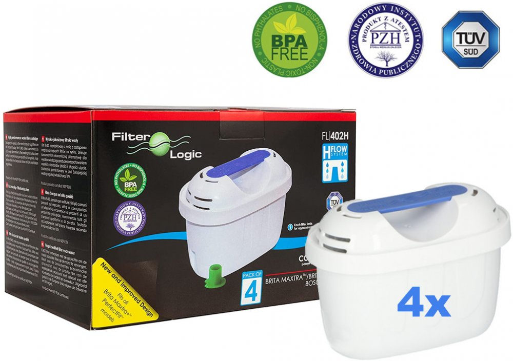 Anglická značka Filter Logic nabízí na trhu náhradní kompatibilní filtr Filter Logic FL-402E typu Maxtra Plus. Filtr je plně kompatibilní s filtračními konvicemi od různých výrobců, ve kterých se používá technologie Brita Maxtra nebo novější Maxtra+.