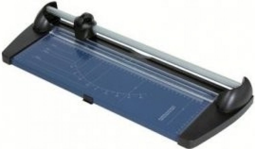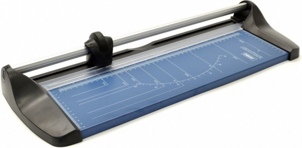 Kotoučová řezačka s broušeným kolečkem na profilované tyči s délkou řezu 460 mm. Pracovní stůl je vybaven natištěnými měřítky a úhly a přítlačnou lištou z průhledného plastu. Řezačka díky své konstrukci uřízne bez problémů 10 listů papíru.