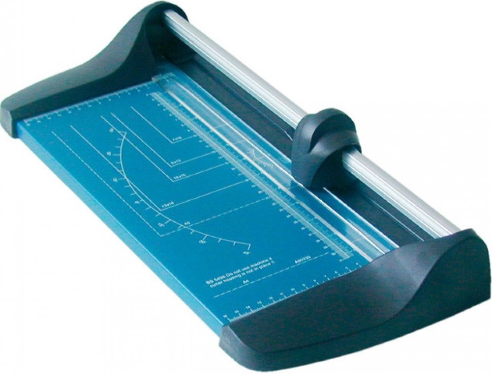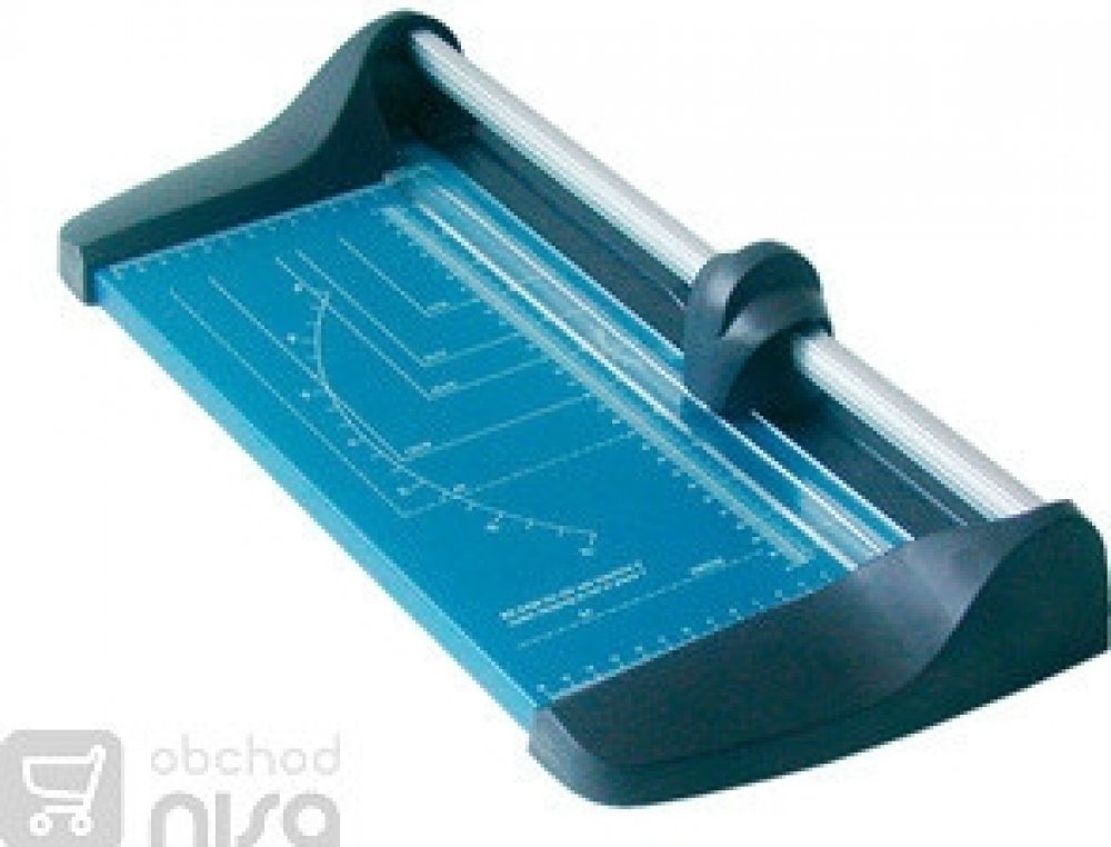 Kotúčová rezačka s brúseným koliečkom na profilovanej vodiacej tyči s dĺžkou 330 mm. Pracovný stôl je vybavený natlačenou mierkou, uhlami a prítlačnou lištou z priehľadného plastu. Rezačka vďaka dobrej konštrukcii a spracovaniu prereže naraz 10 listov 80g papiera. Max. formát A4. Rezacie koliečko z kvalitnej tvrdenej ocele sa rezom doostruje o reznú hranu.