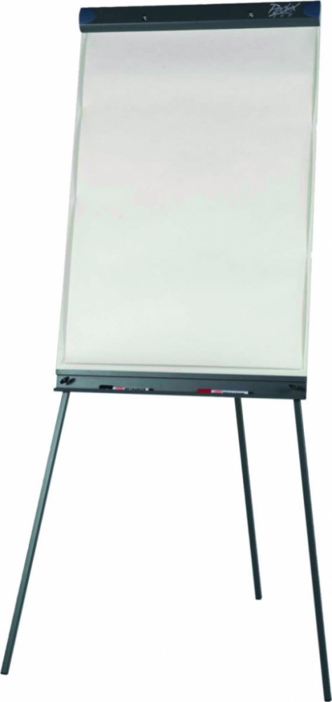 Robustní flipchart s rychloupínací lištou pro bloky. S melaminovým povrchem popisovatelným za sucha stíratelnými popisovači. Tabule je magnetická, možno používat magnety nebo magnetický papír. Flipchart má hliníkový rám. Rozměr desky 70 x 100cm. Stabilní trojnohý stojan.Výškově nastavitelný do 190cm. Odkládací polička šířky 50cm.