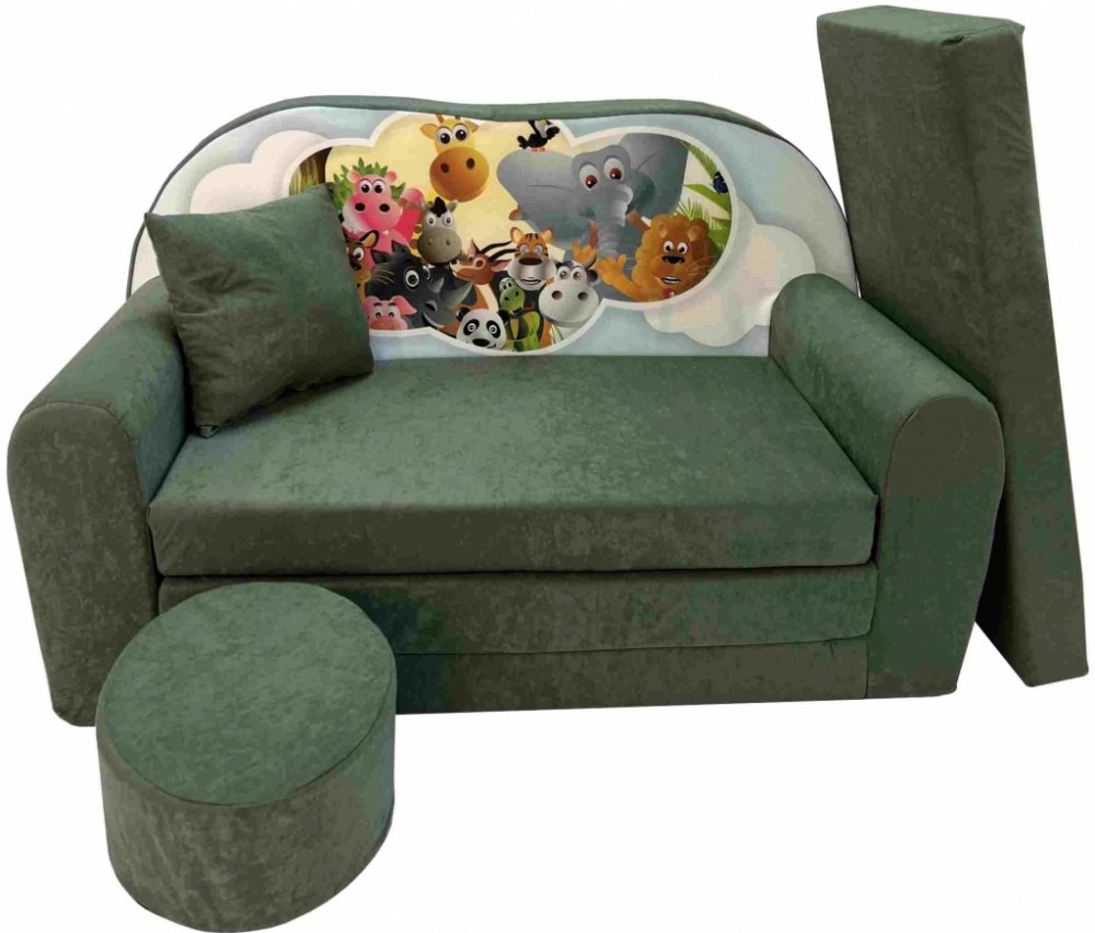 Fimex Dětská rozkládací pohovka + taburet Afrika zelená