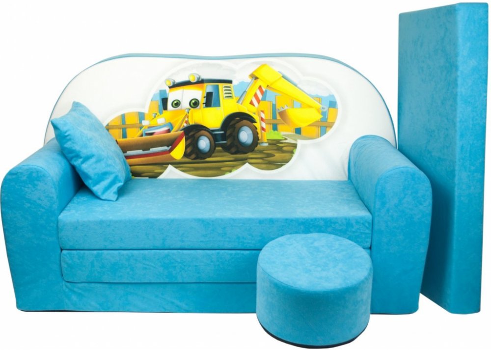 Rozměr pohovky 50x100x60 cm. Po rozložení 170x100x60 cm (síla matrace 8 cm). Pohodlná dětská pohovka, která také působí jako dětské lůžko. Pohovka je praktickým řešením sedacího nábytku do dětského pokoje.