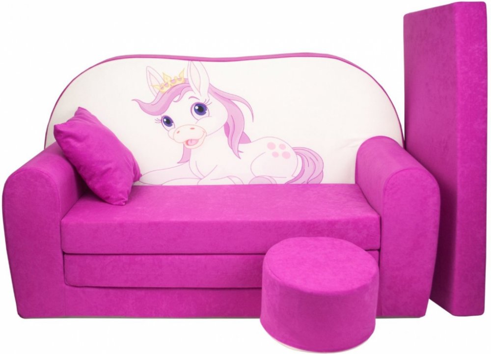 Rozměr pohovky 50x100x60 cm. Po rozložení 170x100x60 cm (síla matrace 8 cm). Pohodlná dětská pohovka, která také působí jako dětské lůžko. Pohovka je praktickým řešením sedacího nábytku do dětského pokoje.