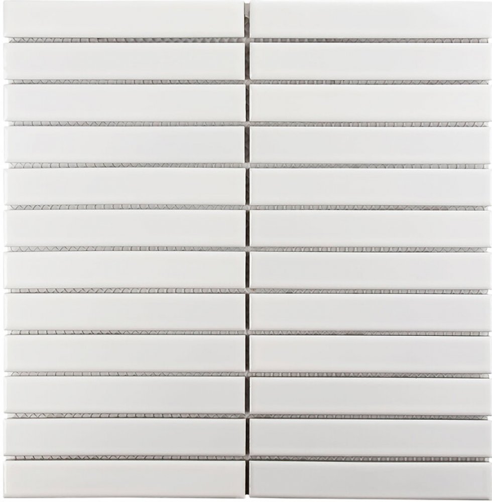 Keramická mozaika SEF22100 v elegantním formátu Kit Kat nabízí čistě bílý odstín s lesklým povrchem, který dokonale odráží světlo a opticky prosvětluje prostor. Protáhlé úzké dílky působí moderně, jemně a vytvářejí na stěně atraktivní, vertikální nebo horizontální rytmus.