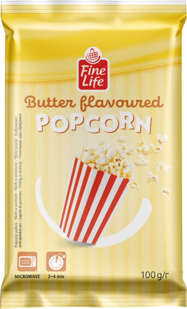-- Fine Life Popcorn máslový 100 g.O značce:Značková kvalita FINE LIFE na vašem stole.Za produkty, které jsou srovnatelné se značkovými produkty ručí makro svým jménem.Značka FINE LIFE nabízí široký sortiment převážně v kategorii koloniálu, mražených…
