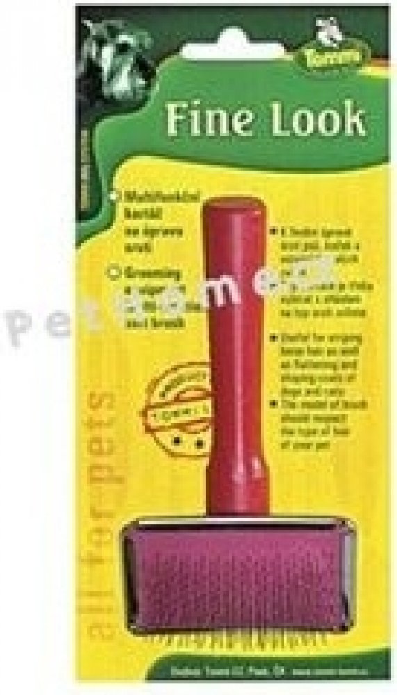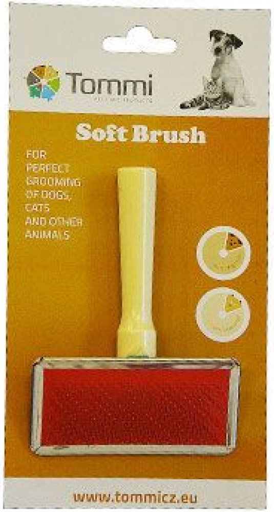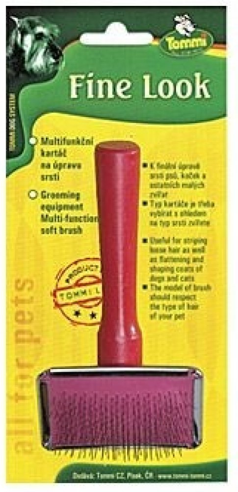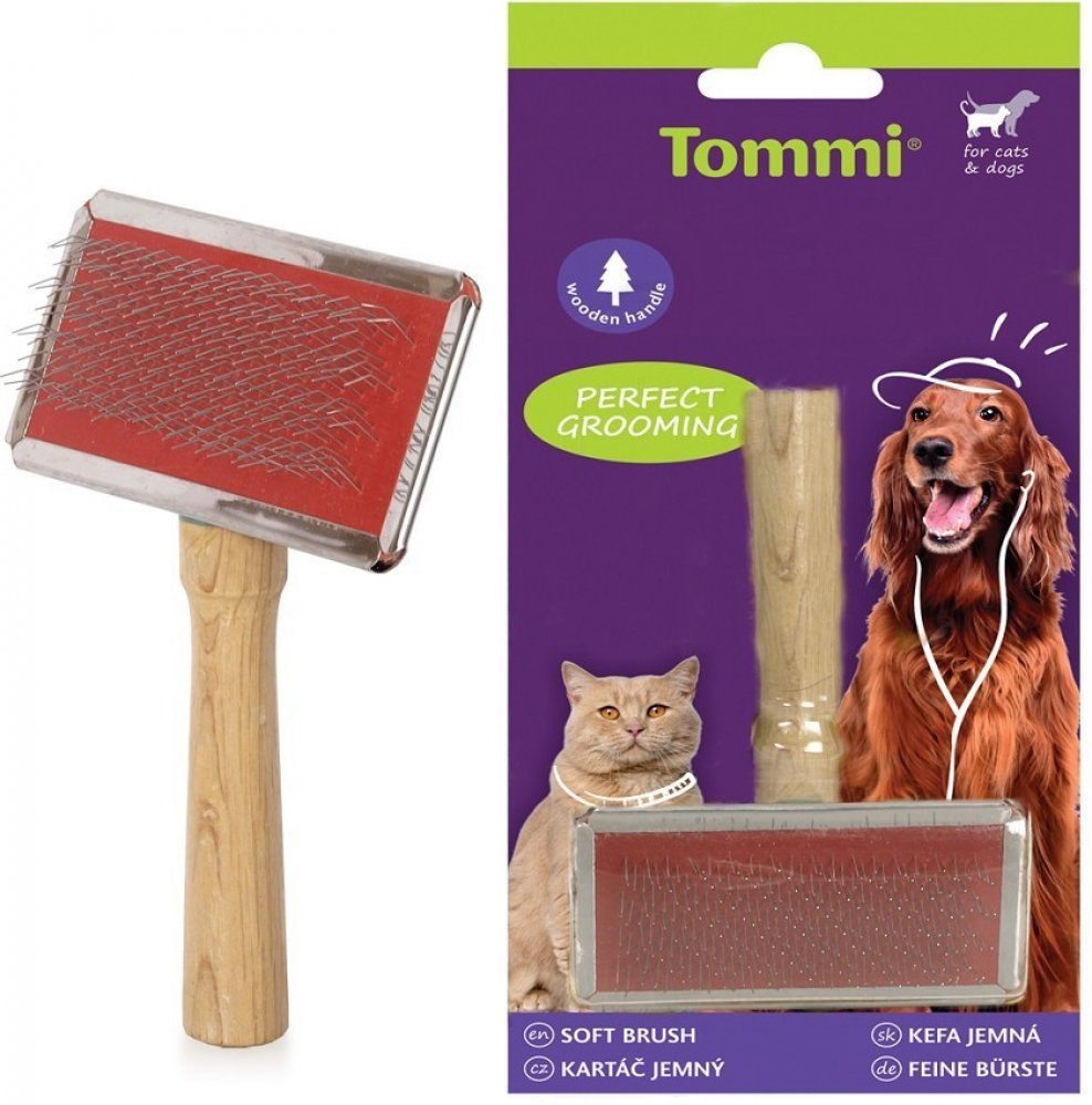 Malý kartáč na malá zvířátka jako kočka, králík nebo morče. Na dřevěném držátku kartáče je připevněna kovová obdélníková hlava o rozměru 5,5 x 4 cm. Zoubky jsou jemné, tenké a bez kuliček, nasedají přímo na kovovou část a nepruží. Kartáč je vhodný pro malé ruce.
