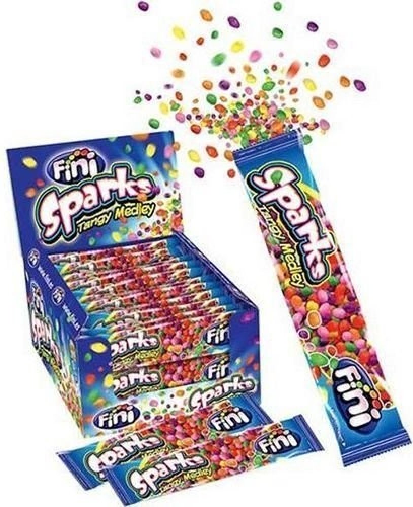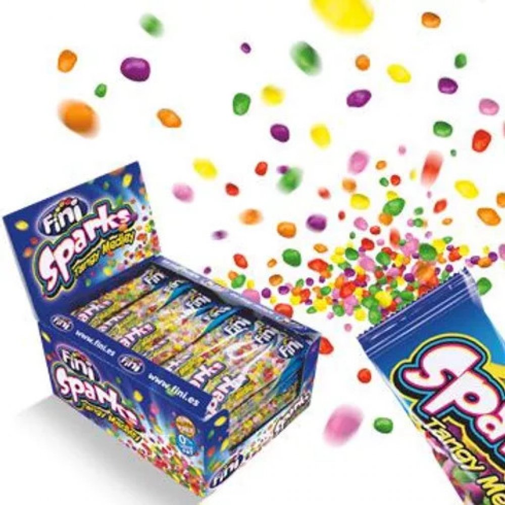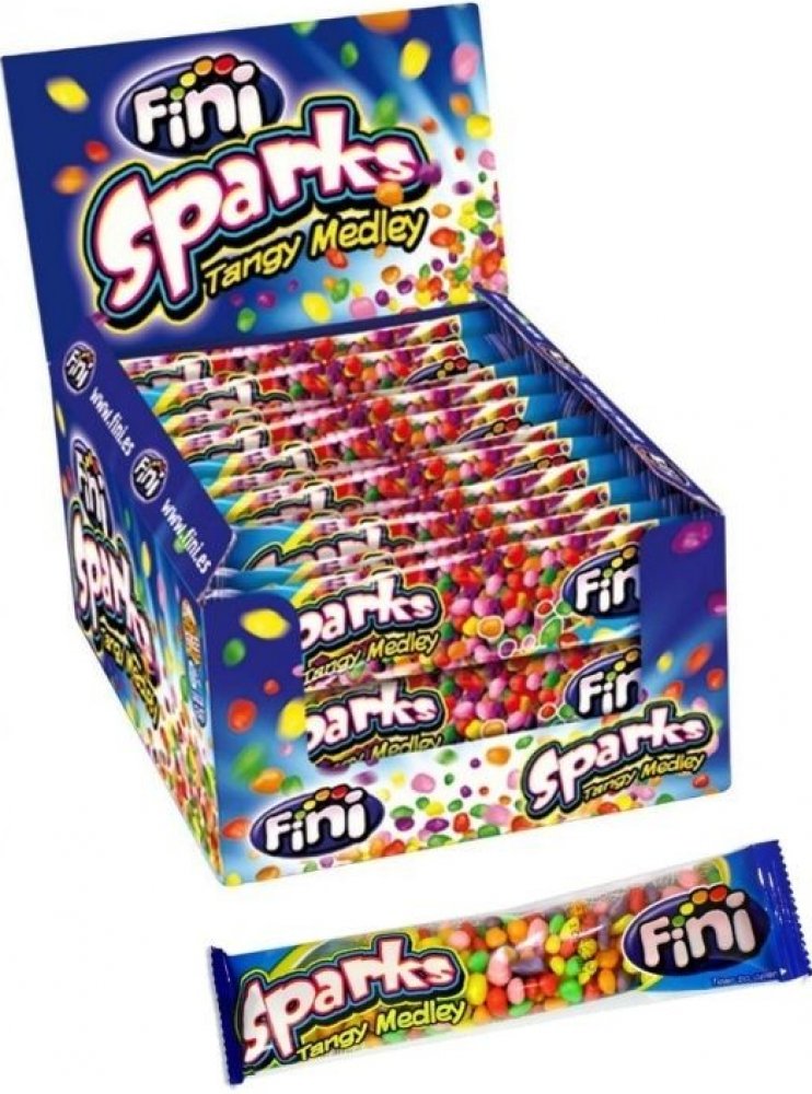 Kyselé bonbónky s ovocnou příchutí. Složení: Složení : cukr, dextróza, kyselina E 296, stabilizátor arabská guma, aromata, leštící látky : E903, E905; barviva : E100, E120, E133, E160c, E171. Výrobce: Fini Golosinas España, S.L.U. Ctra. de Madrid, Km 385 30500 Molina de Segura (Murcia) Španělsko Skladujte na suchém místě, chraňte před teplem.