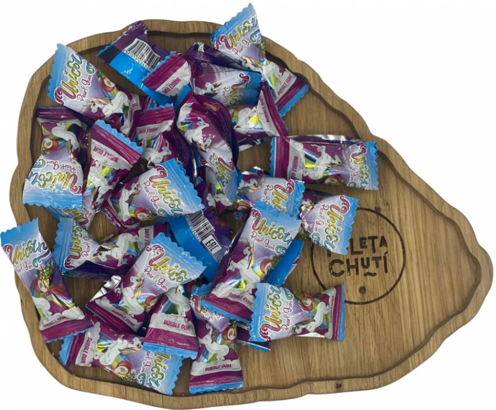 Žvýkačka Unicorn s příchutí jahody.