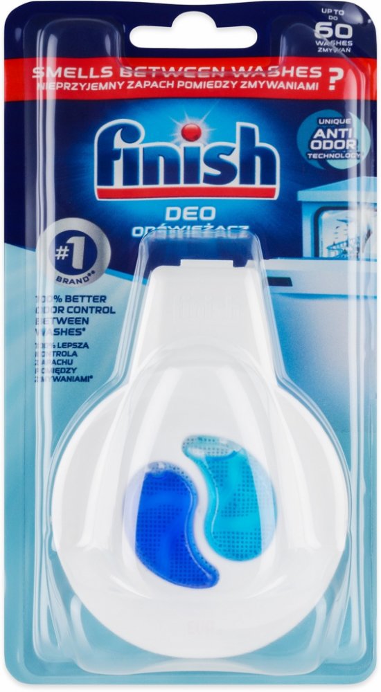 S osvěžovačem Finish s technologií Anti Odor dosáhnete lepšího osvěžení vnitřního prostoru myčky mezi jednotlivými mycími cykly. Zbavte se nepříjemného zápachu ze zbytků jídla a provoňte svou myčku vůní svěžesti. Finish osvěží Vaši myčku po dobu 60 mycích cyklů, kdy ho jednodušše zavěsíte na koš v myčce pomocí háčku.