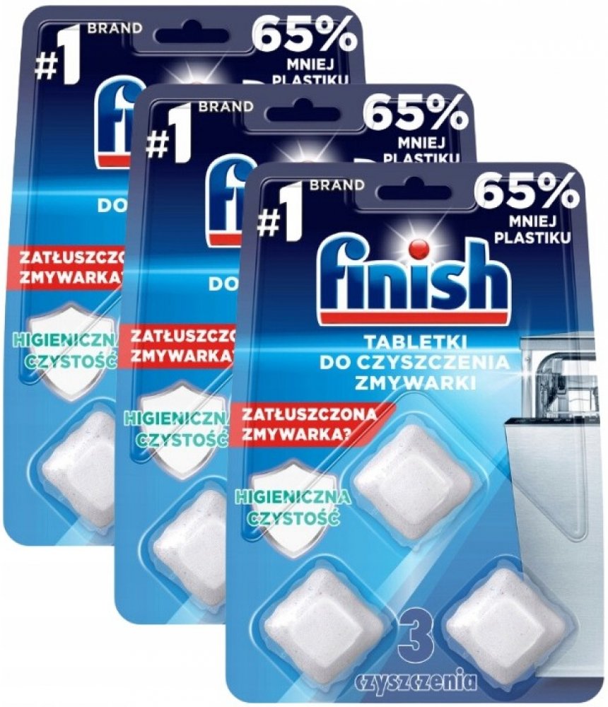 ** O 65,4 % méně plastu v obalu na tabletu ve srovnání s předchozím balením Finish Hygienic Clean. Tablety na čištění myčky nádobí 3 kusy.