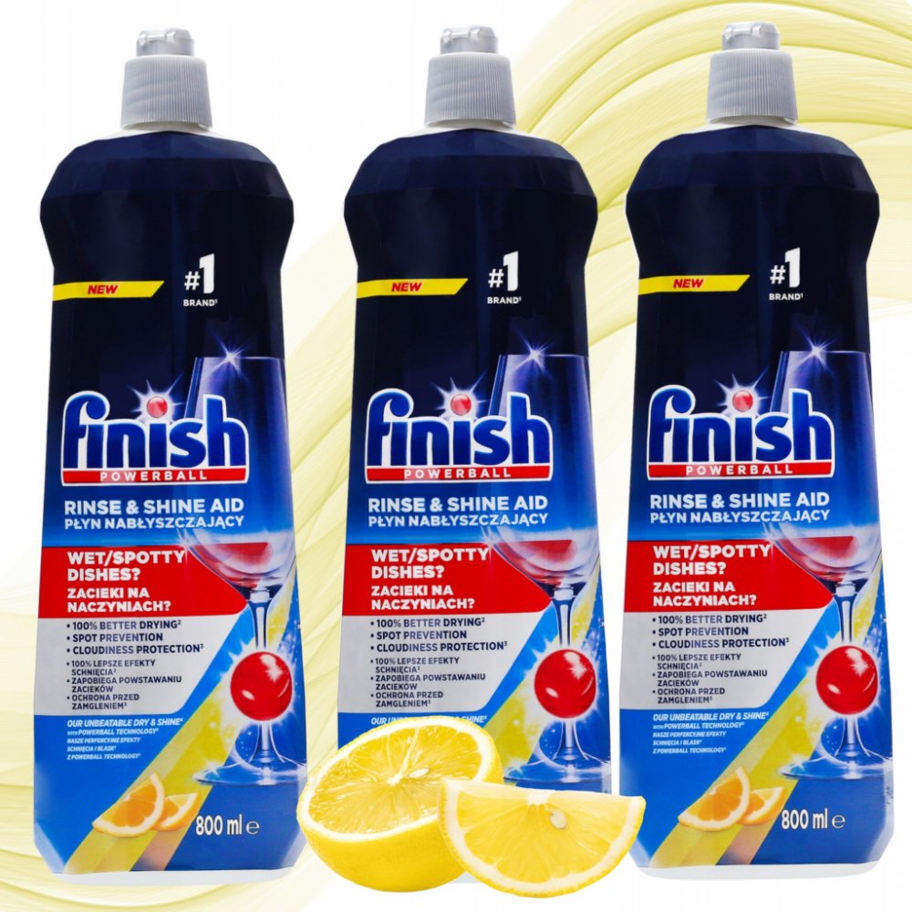 Finish leštidlo zajišťuje účinný efekt rychlého schnutí a také zabraňuje tvorbě skvrn na nádobí. Má složení s posílenými ochrannými vlastnostmi skla, díky kterým sklo nezakrývá mlhu a zajišťuje tak dlouhotrvající lesk. Po použití lešticího prostředku Finish nádobí schne dvakrát rychleji než při použití samotného čisticího prostředku Finish.
