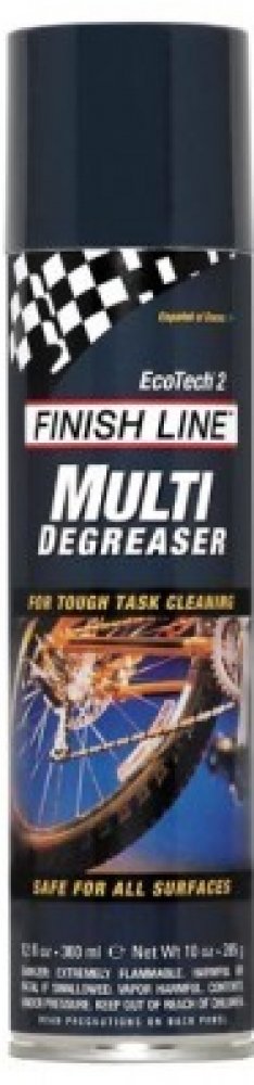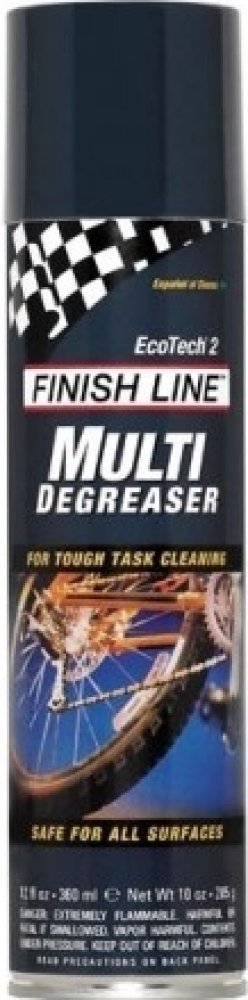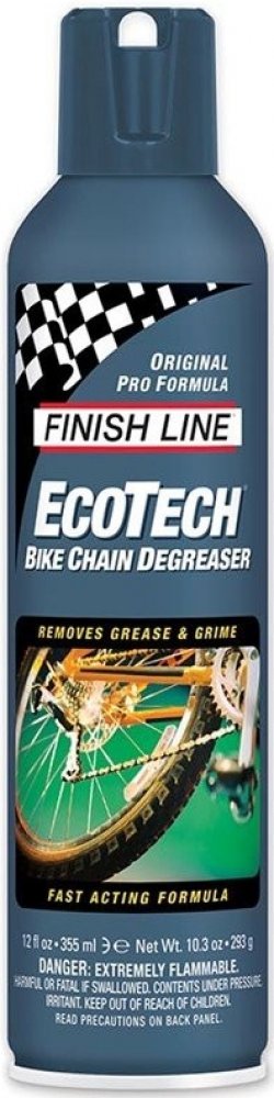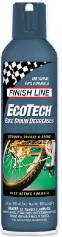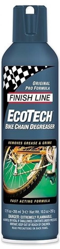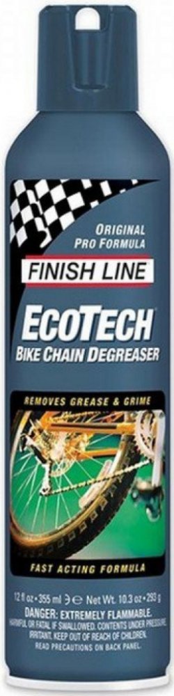 Finish Line Ecotech Degreaser je čisticí prostředek, který je silnější než Bike Wash. Je určený na odolnou špínu a mastnotu, přesto ho lze bezpečně použít na všechny povrchy včetně laku rámů. EcoTech 2™ je zcela netoxický, vyrobený výhradně z bioodmašťovacích látek včetně rozpouštědla ze sojového extraktu. Nevytváří téměř žádné výpary, je šetrný k plastovým a gumovým povrchům. Balení: 350 ml spray