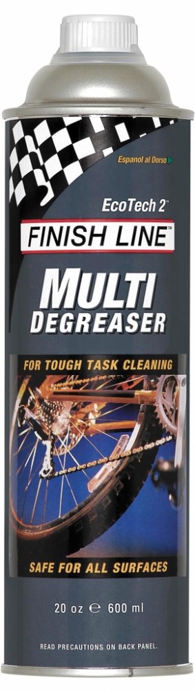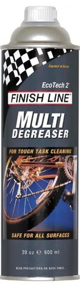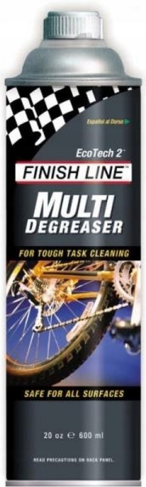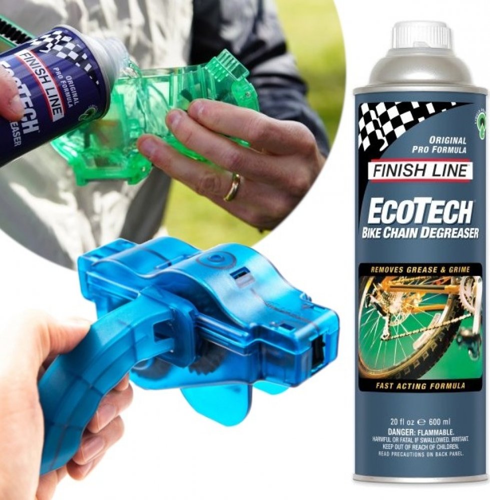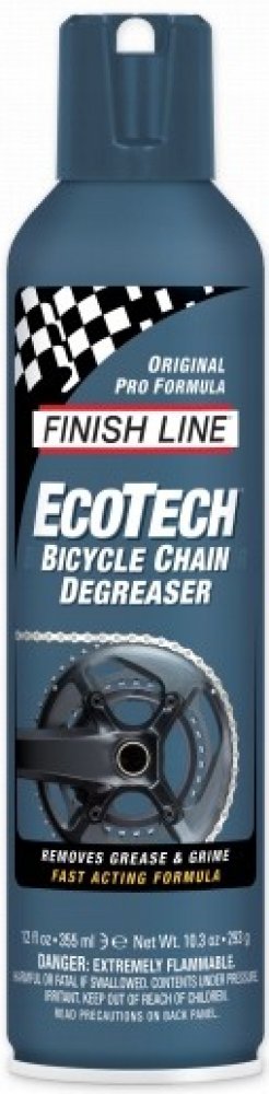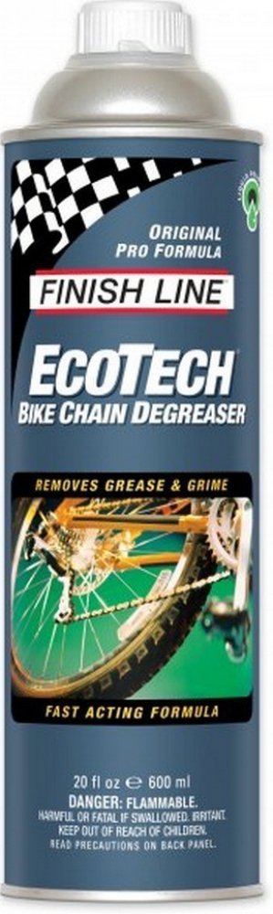 "Finish Line Ecotech Degreaser je čisticí prostředek, který je silnější než Bike Wash. Je určený na odolnou špínu a mastnotu, přesto ho lze bezpečně použít na všechny povrchy včetně laku rámů.