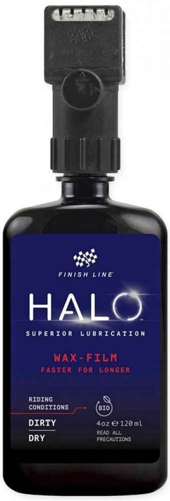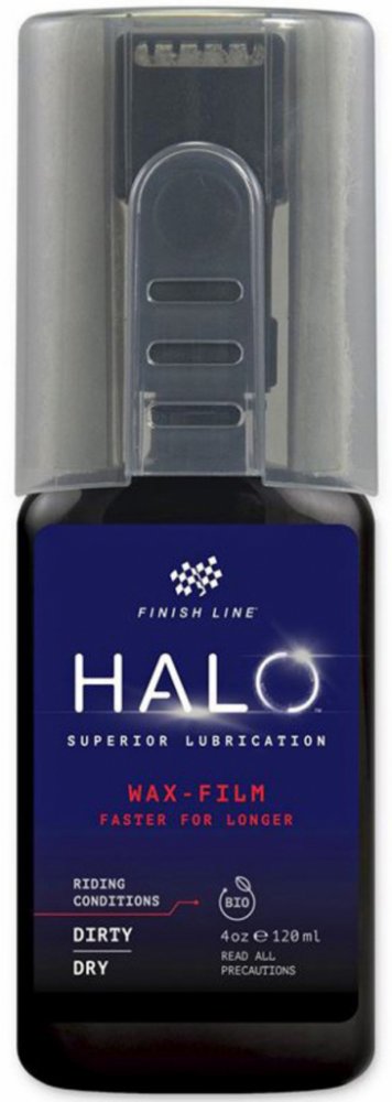 HALO Wax-Film je prémiové mazivo Finish Line na bázi vosku s bezkonkurenčním výkonem v podobě skvělé čistoty řetězu a velkého kilometrového nájezdu mezi jednotlivými aplikacemi maziva.