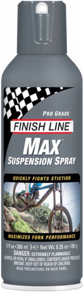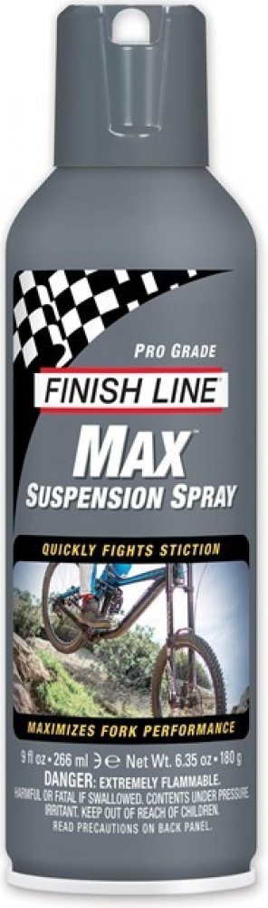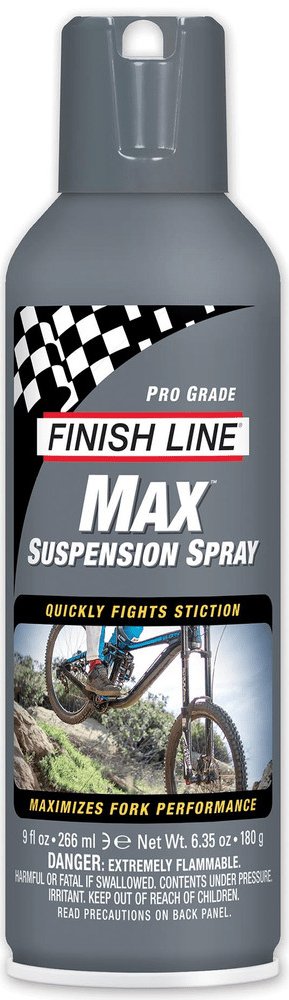 Finish Line Max Suspension Spray je vysoce účinný sprej navržený pro údržbu a ochranu odpružení vašich jízdních kol. Tento sprej je ideální pro MTB, enduro i silniční kola, kde poskytuje dlouhodobou ochranu a zajišťuje optimální výkon odpružení. Jeho speciální složení pomáhá minimalizovat tření a zajišťuje hladký pohyb pístů, čímž zvyšuje životnost a účinnost vašeho odpružení.