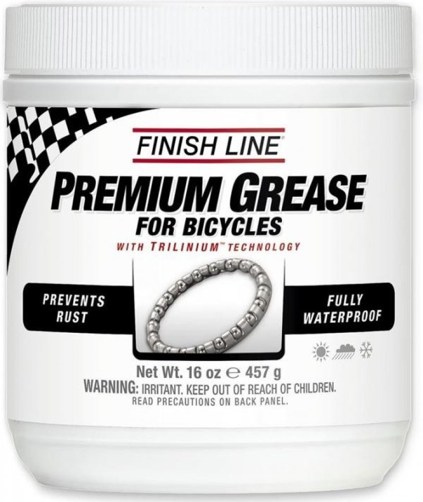 Vazelína Finish Line Premium Grease překonává všechna očekávání a díky vlastní technologii Trilinium je velmi odolná extrémním tlakům, skvěle odolává korozi, omezuje opotřebení závitů, a to vše dokonce i ve slané vodě.