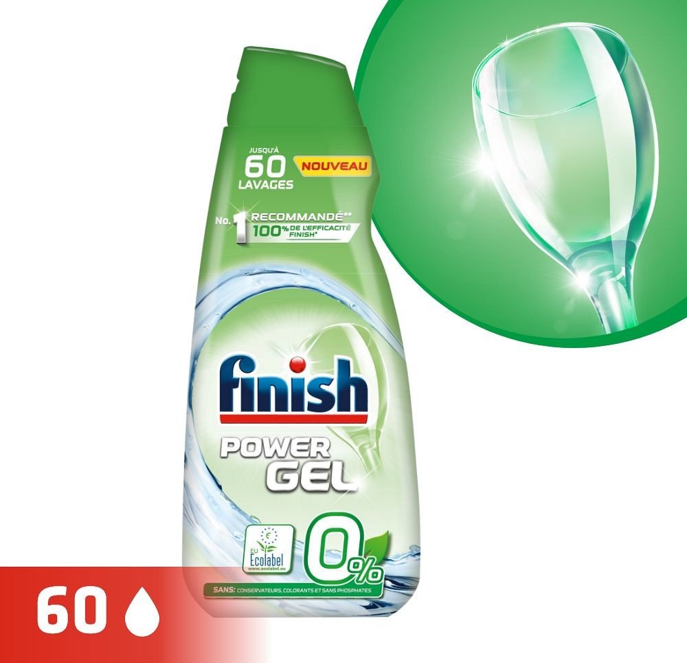 Finish Power Gel 0% gel do myčky díky účinnému složení zajistí vašemu nádobí tu nejlepší čistotu a zářivý lesk. Zároveň poskytuje dodatečnou ochranu proti korozi skla, takže si sklenice déle udrží oslnivý lesk. Gel do myčky Finish Power Gel 0% s účinnou čistící silou se optimálně stará o vaše nádobí a navíc nyní bez přidaných fosfátů, konzervantů nebo barviv.