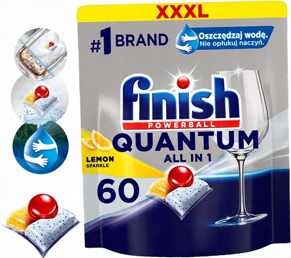 Finish Quantum představuje hluboké čištění a oslnivý lesk již od prvního použití. Účinný i bez předmytí nádobí.