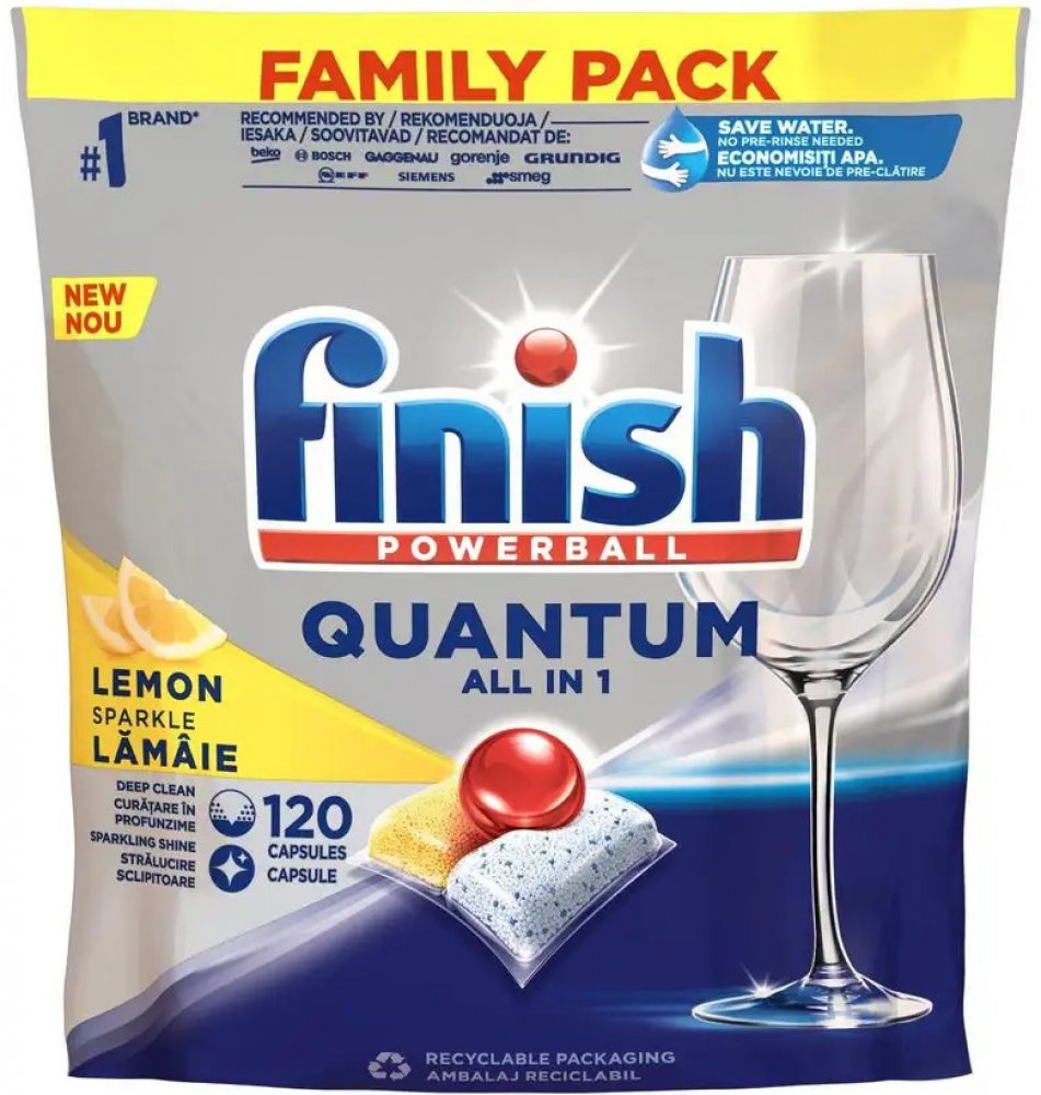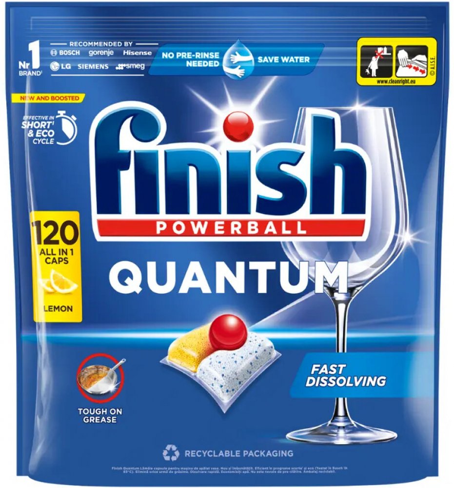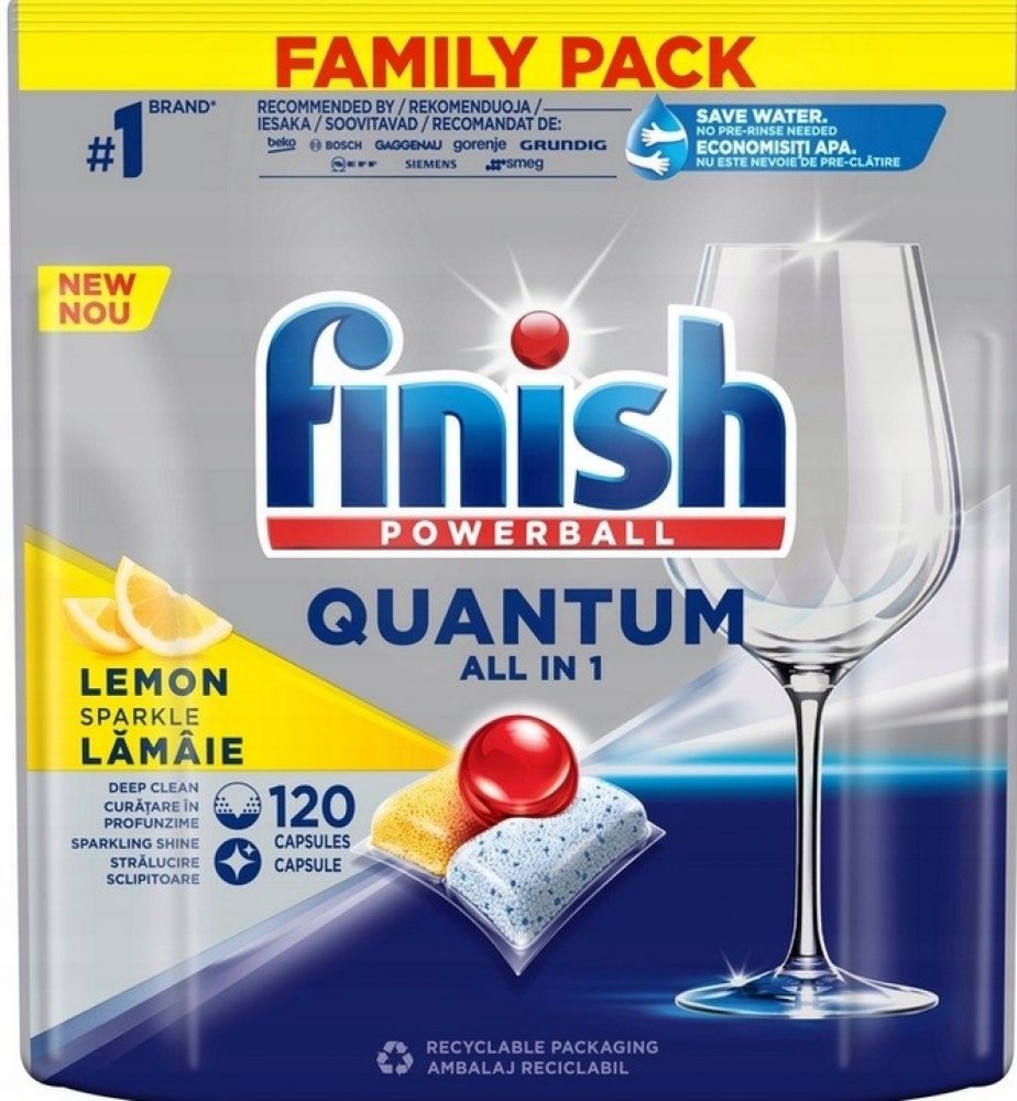 Finish Quantum All in 1 kapsle do myčky nádobí Lemon Sparkle 120 ks