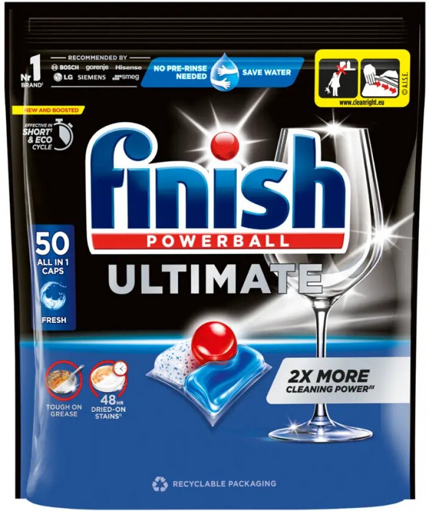 Finish Ultimate All in 1 tablety do myčky slouží k efektivnímu mytí nádobí, odstranění zaschlých zbytků jídla a zajištění lesklého povrchu skla a příborů. Jsou určeny pro pravidelné i intenzivní cykly myčky, kdy je potřeba spolehlivý čistící výkon bez složitého nastavování.