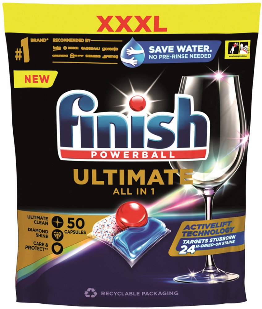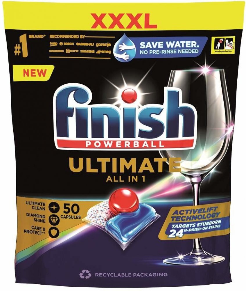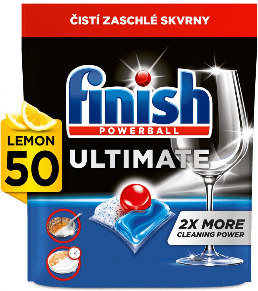 Shrnutí výhod produktu Finish tablety do myčky Ultimate All in 1, 50 ks