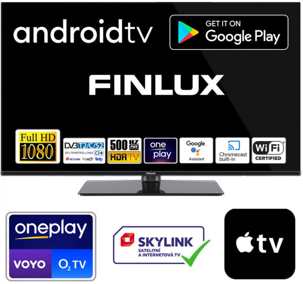 32" (82 cm) Full HD • rozlišení 1920 × 1080 px • DVB-C/S2/T/T2 • kodek HEVC (H.265) – nový digitální standard • Smart TV – internetový prohlížeč • HbbTV • HDR/HDR Dolby Vision/HDR10/HLG • PVR • 2× HDMI • 1× USB • OS Android TV • Bluetooth • Chromecast • Wi-Fi • sluchátkový výstup • chytrý ovladač v balení