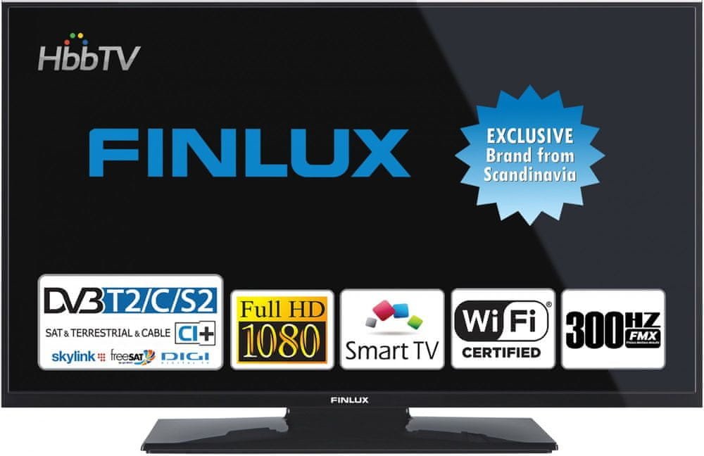 Finlux 100 cm LED 40 palců Linux 2022 1920 x 1080 300 Hz 50 / 60 Hz 2 1 6 kg 100 x 100 F 75 kWh 45 kWh