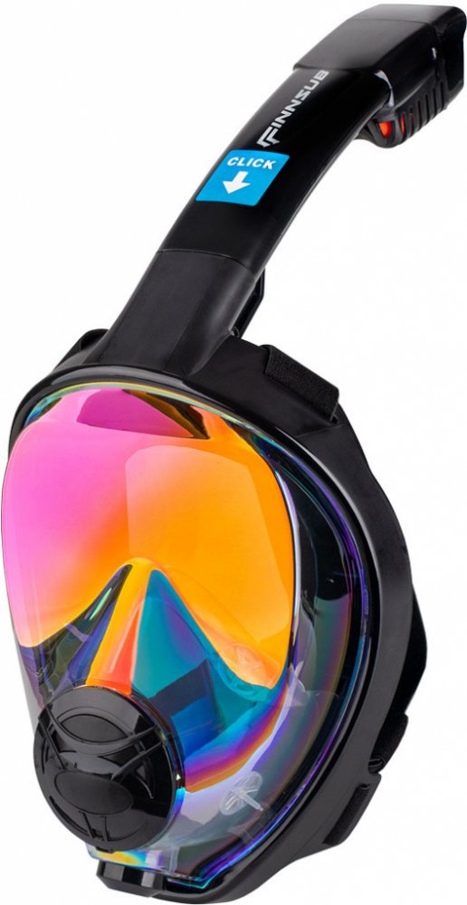 Celoobličejová maska se zrcadlovými skly se slunečním filtrem a integrovaným šnorchlem Finnsub LOOK vám zajistí přirozené dýchání nosem i ústy. Díky širokému zornému poli uvidíte vše kolem vás jasně a zřetelně, sluneční filtr zlepšuje pod vodou kontrast barev a vytahuje ostrost. Díky inovované ergonomii oblasti nosu se maska při výdechu nemlží. Technologie Dry Top omezí vniknutí vody do šnorchlu a výpustný ventil v oblasti brady umožní odtok vody při zvednutí hlavy, masku tedy není třeba během šnorchlování sundávat. Silikonová lícnice těsně přiléhá k obličeji a tím zamezuje vniknutí vody do prostoru masky, za předpokladu, že nejsou pod maskou zachyceny vlasy nebo vousy. Je vyrobena z lékařského silikonu, který nedráždí pokožku, je Eco-friendly a není toxický. Nastavitelné elastické pásky jsou pohodlné a netahají vlasy. Součástí masky je držák kamery Go Pro pro záznam pestrého podmořského světa.