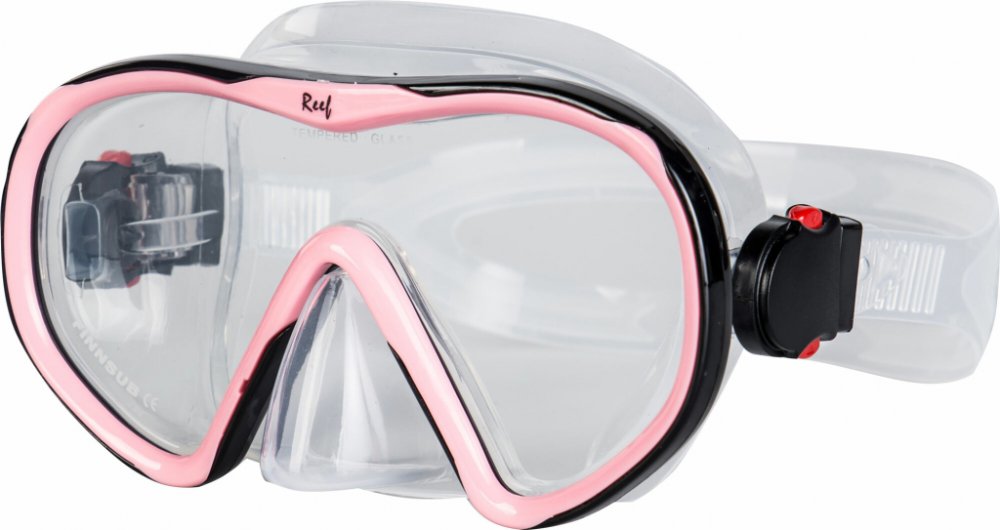 Potápěčská maska Finnsub REEF s malým vnitřním objemem a širokým zorným úhlem. Vyrobená z kvalitního transparentního silikonu, díky kterému jednoduše přilne každému tvaru obličeje.