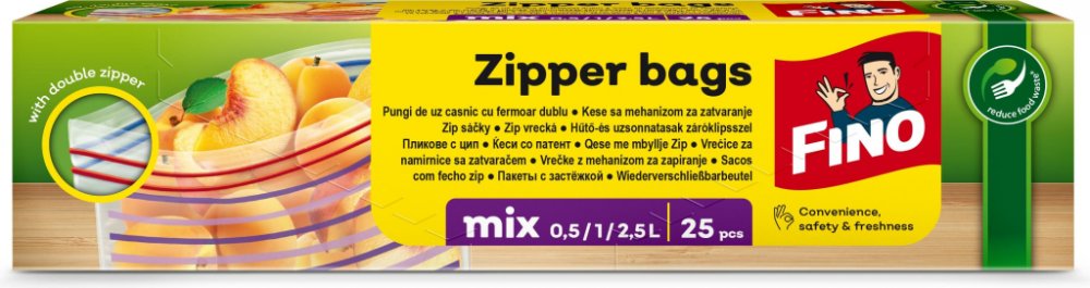 Fino Zip uzavíratelné sáčky mix 0,5/1/2,5l 25 ks