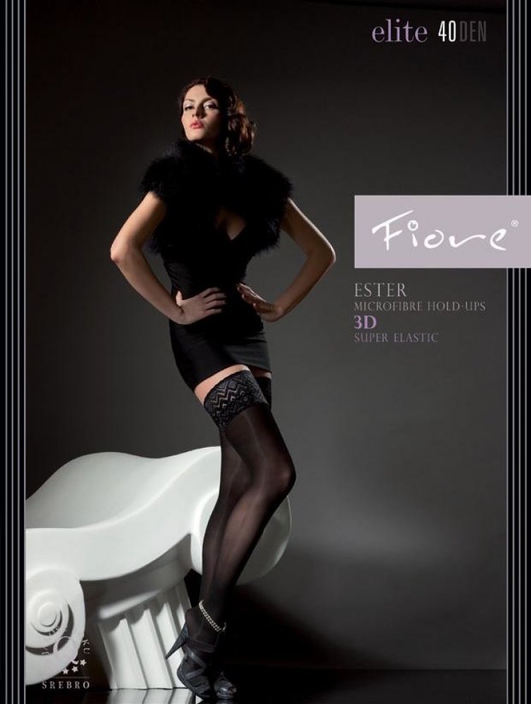 Ester-luxusní samodržící punčochy 40den s krajkou. Neviditelně zesílená špička (odolnější a vhodné i do otevřených bot). Vyrobené z mikrovlákna.