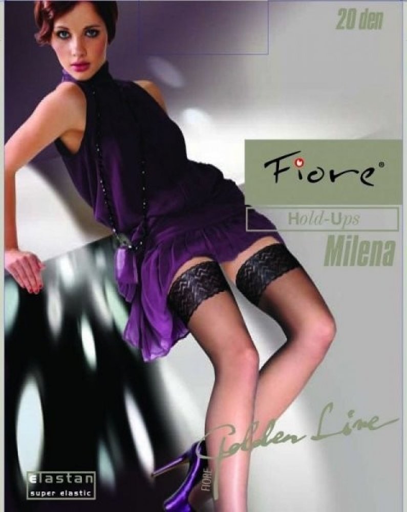Milena-exklusivní, samodržící punčochy 20den, z opředeného elastanu. Matné, bez zesílené špice s ozdobnou krajkou s dvojitým silikonovým páskem.