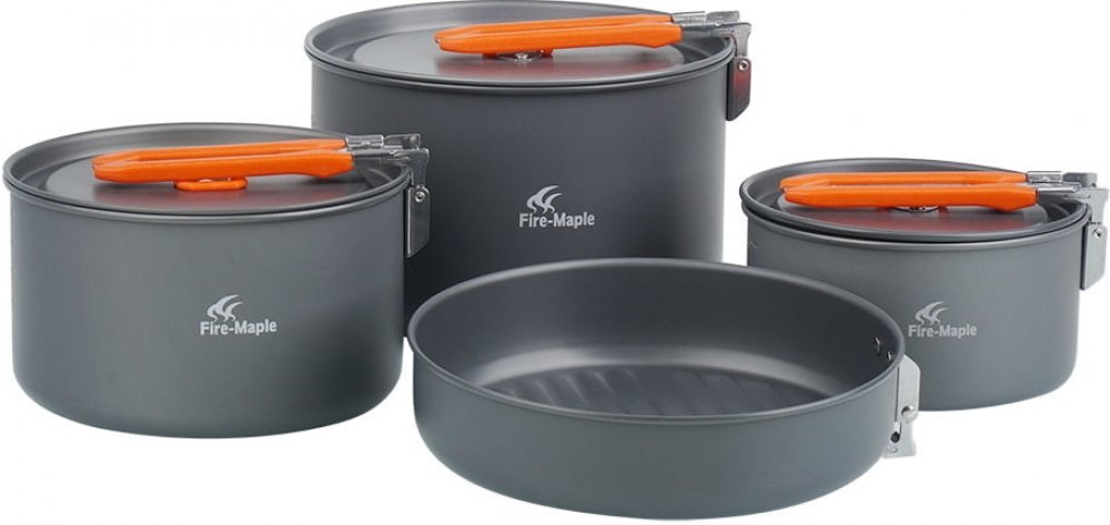 Feast 5 je bohatá sada turistického nádobí Fire-Maple, která se bude hodit pro 4-5 osob cestujících, pěších na horském trekku nebo vyrážejících na vážný lezení. Sada se bude hodit v kuchyni pro vaření většího počtu lidí, ale může také sloužit lehce „dekompletovaně“ pro menší skupinu. Nemusíte přece vždy brát všechny jeho části. Sada Fire Maple Feast 5 obsahuje tři hrnce a jednu pánev. Všechny nádobí jsou vyrobeny z odolného a lehkého hliníku. Materiál byl podroben eloxování a vytvrzování, díky čemuž se nádobí Fire-Maple stalo odolným, snadno se čistí a získalo vzhled, který potěší oko. Hrnce a pánev mají skládací, samoblokující rukojeti. Zámek zabraňuje složení tohoto prvku a plastový panel na každé z rukojetí umožňuje sundávat horké hrnce z hořáku bez rizika popálení od horké rukojeti. Stojí za to dodat, že na stěnách hrnců jsou vyraženy odměrky pro odměřování objemu. Během přepravy se sada nádobí skládá z jednoho do druhého. Do kompletu s hrnci výrobce přiložil lžíci, 2 misky a houbičku na čištění nádobí. Feast 5 je jedním z nejkompletnějších setů pro turistickou kuchyni!