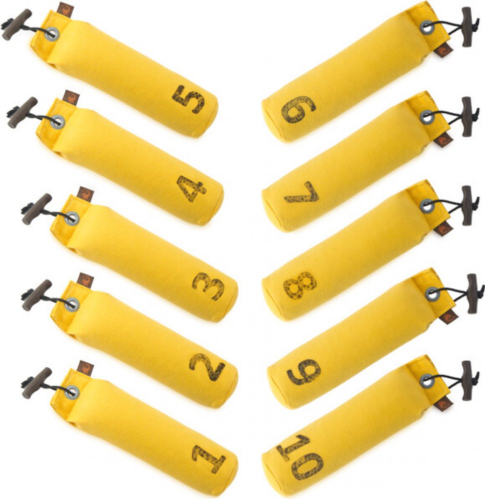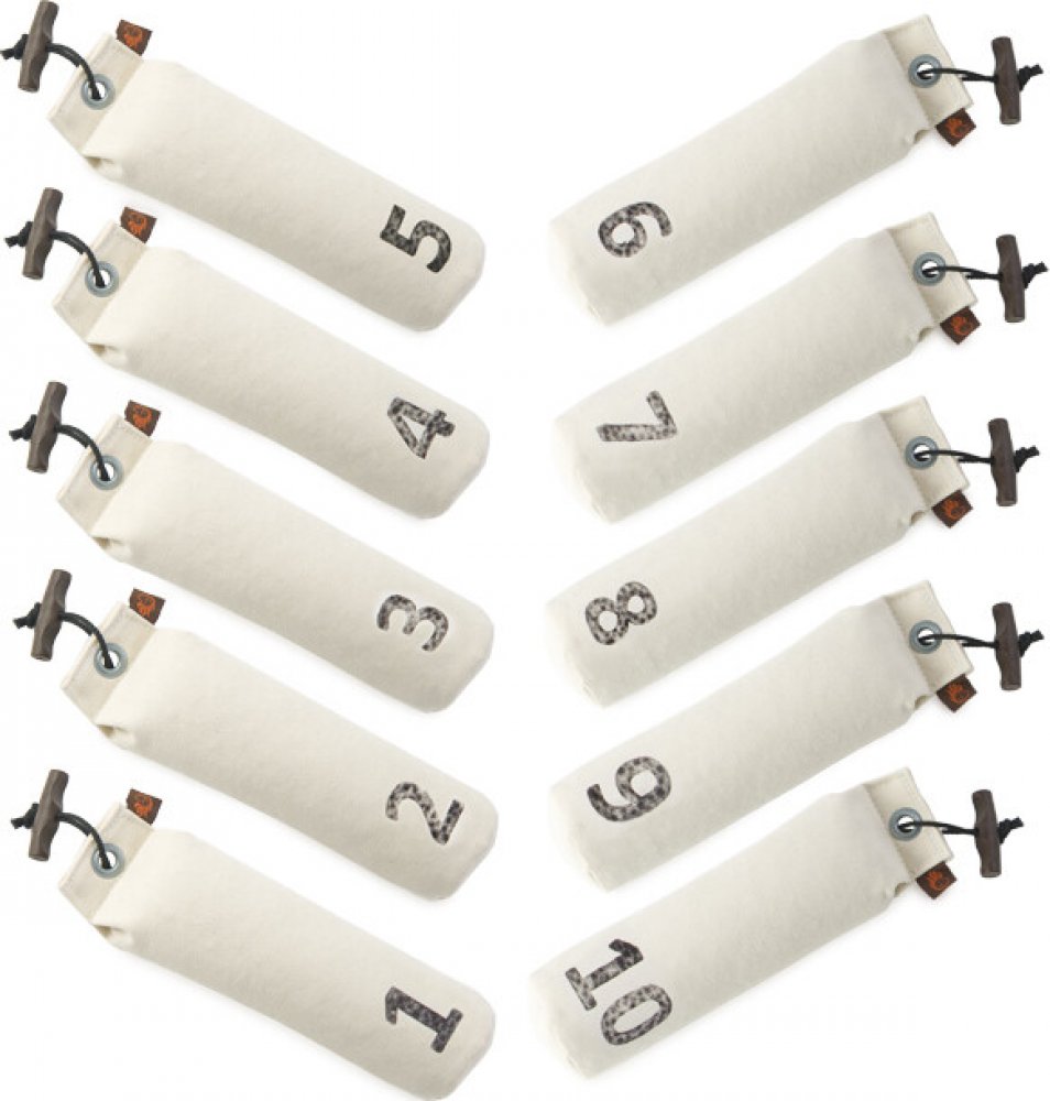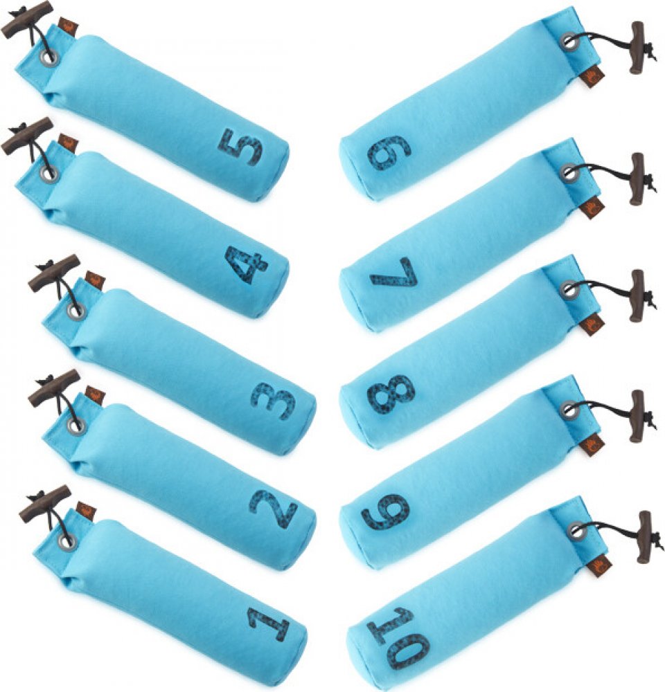 Už žádné zapomenuté dummy na tréninku. Číslované dummy jsou také ideální pro kontrolu práce psa v nepřehledném terénu, zejména při tréninku, kde pes nesmí zaměňovat. Speciální plnění dummy umožňuje i práci ve vodě. Vyrobeny jsou z vysoce kvalitního odolného materiálu, pachovatelné.