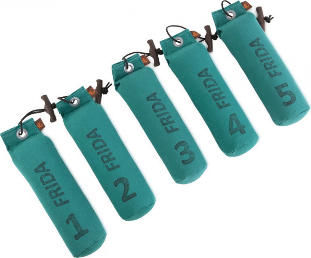 Sada pěti standardních dummy 500 g, které jsou číslovány 1-5. Díky tomuto číslování jsou nezaměnitelné. Už žádné zapomenuté dummy na tréninku. Číslované dummy jsou také ideální pro kontrolu práce psa v nepřehledném terénu, zejména při tréninku, kde pes nesmí zaměňovat. Speciální plnění dummy umožňuje i práci ve vodě. Vyrobeny jsou z vysoce kvalitního odolného materiálu, pachovatelné.