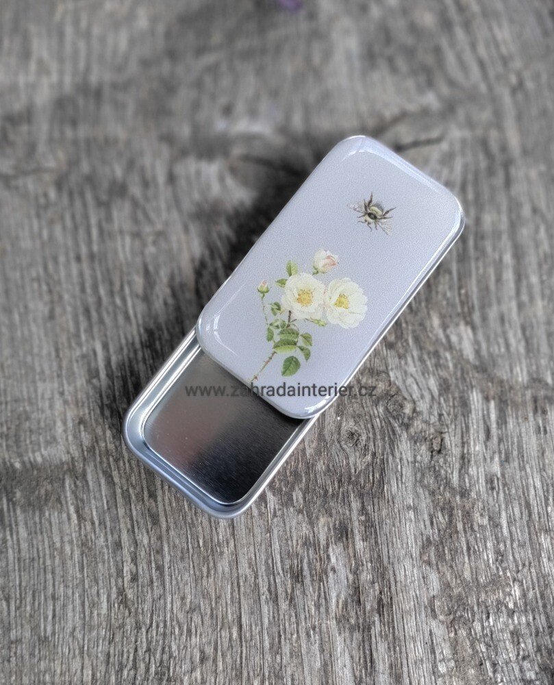 Firefly Notes plechová krabička růže a včela 6 cm x 3,5 cm