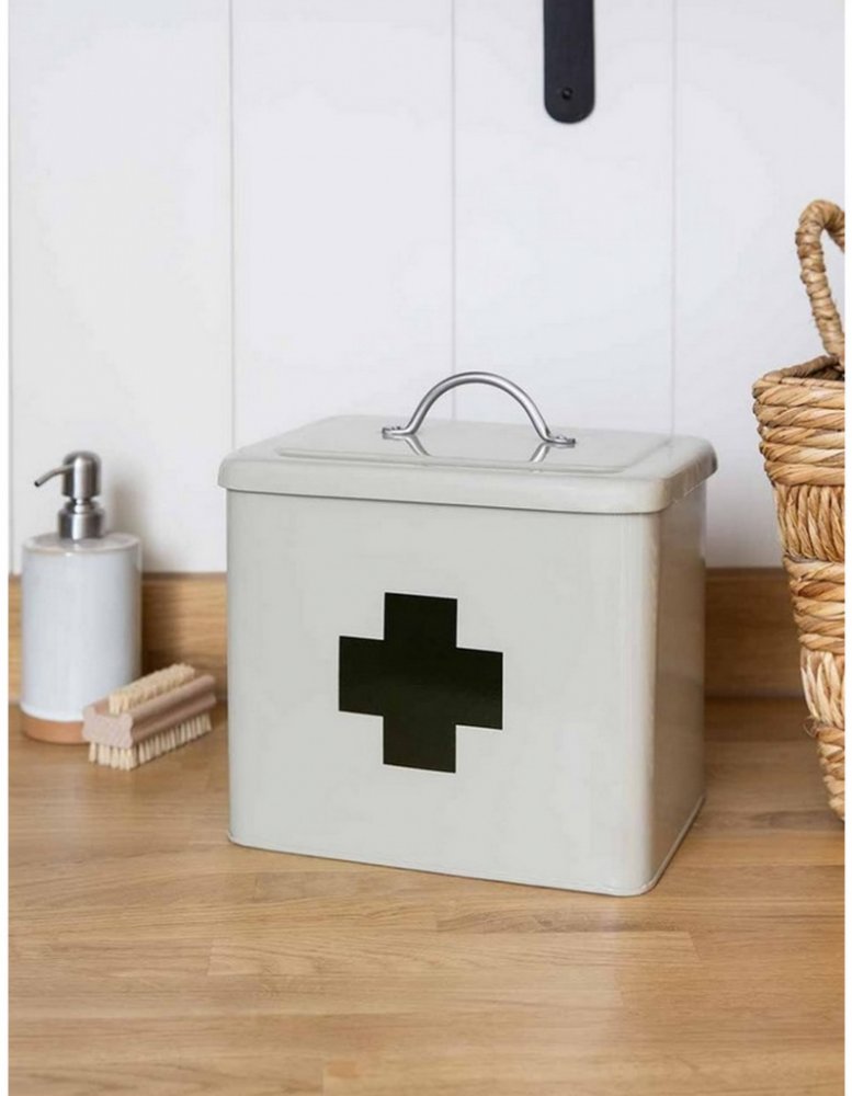 V žádné domácnosti by neměla chybět lékárnička s první pomocí a měla by být řádně vybavena. V tom vám může pomoci plechový box na léky First Aid od britské značky Garden Trading, který je nejen praktický, ale i designově zajímavý. Zdobí jej černý kříž, který už jasně napovídá, k čemu se box používá a co se v něm nachází. Uvnitř najdete odnímatelnou část rozdělenou na tři oddíly (Pills - prášky, Plasters - náplasti, Bandages - obvazy a obinadla), pod tímto dílem se nachází volný prostor vhodný pro uložení dezinfekce a např. různých krémů a olejíčků. Odteď můžete mít léky přehledně uložené, zorganizované a vždy po ruce.