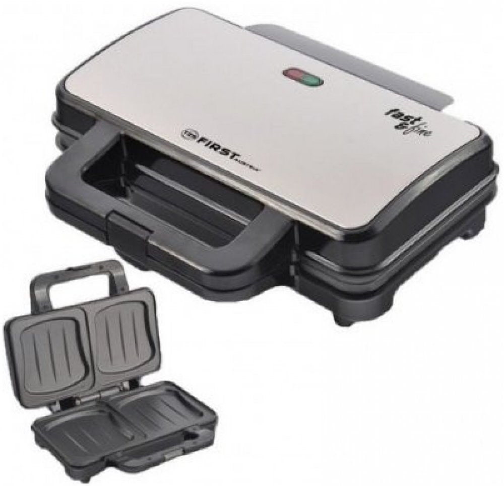 sendvičovač First Austria FA-5337-5pro dva XL toustynepřilnavý povrchprostor pro uskladnění přívodní šňůrytepelně izolované madlo s klipemelegantní kombinace černé a stříbrné barvyrozměry: 24,5 x 29 x 10 cmvýkon: 900 Wvnější povrch: plast / nerezová ocel