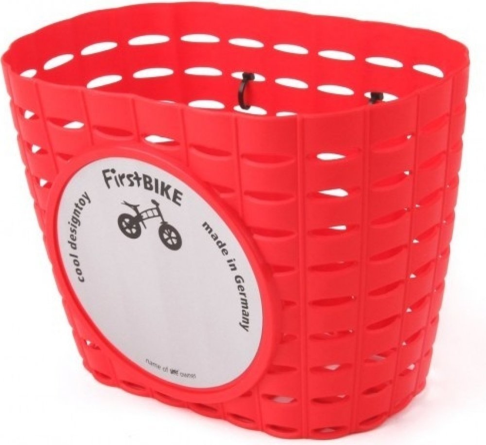 Plast je pružný, při pádu by se neměl rozlomit. Přidělává se černými pásky na vidlici odrážedla First bike. Vepředu samolepka od First bike (dle skladových zásob dodavatele, nemůžeme zaručit stoprocentně stejnou jako na obrázku). Děti moc rády něco převážejí, i když nám dospělým přijde košík k odrážedlu jako nesmysl navíc, tak děti je milují. Baví se třeba tím, že odněkud někam převážejí kamínky, klacíky nebo naloží na cestu sebou oblíbeného plyšáka.