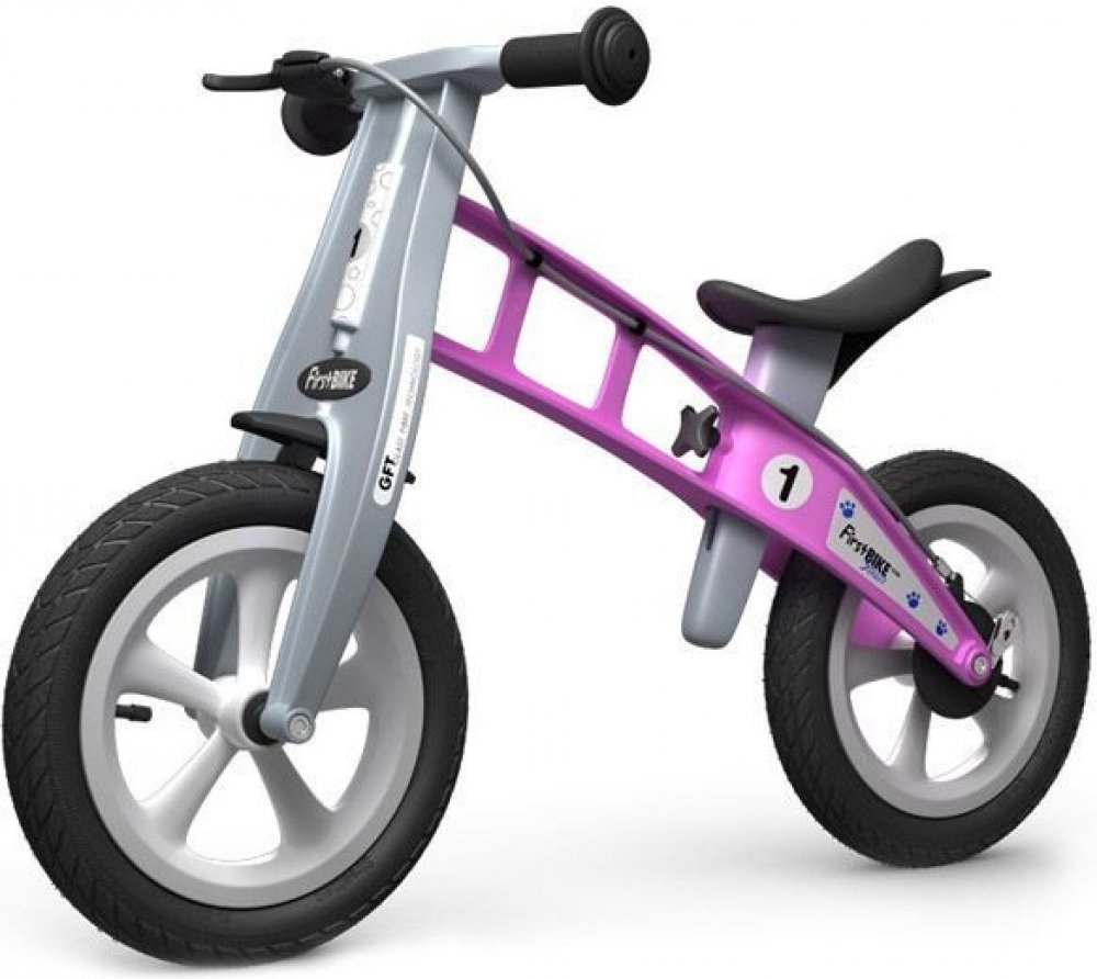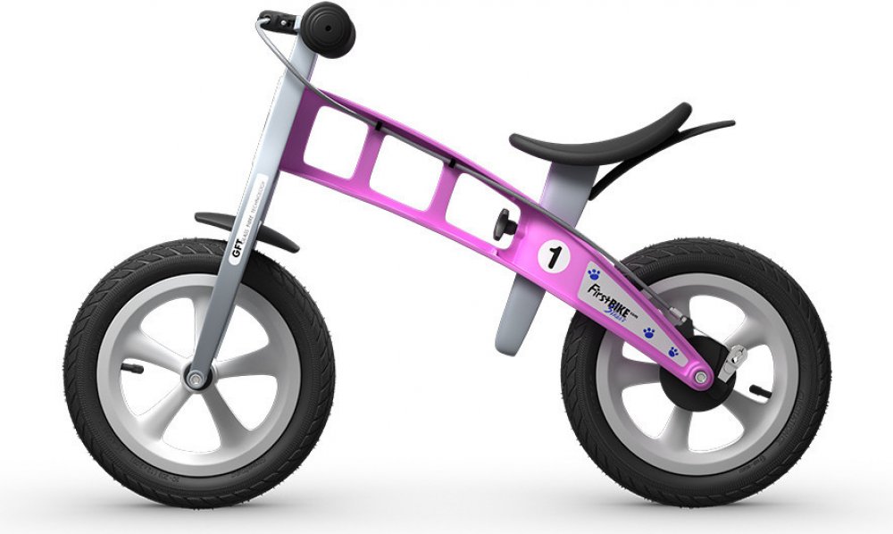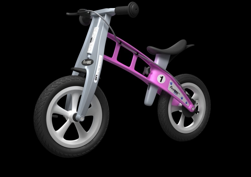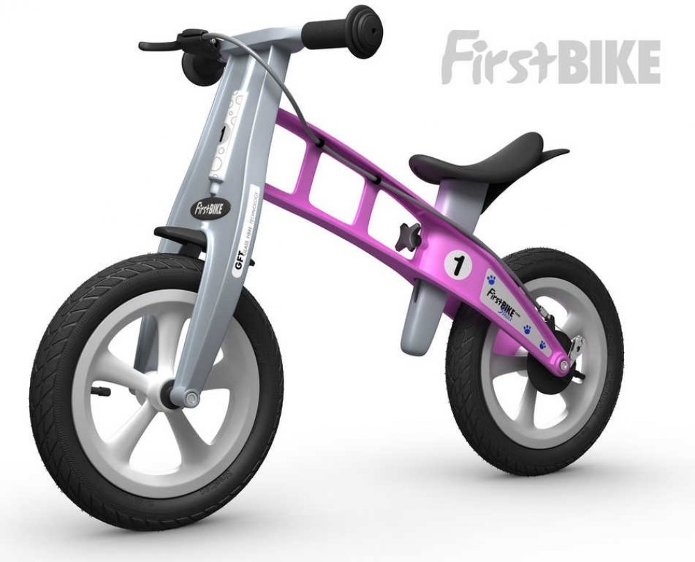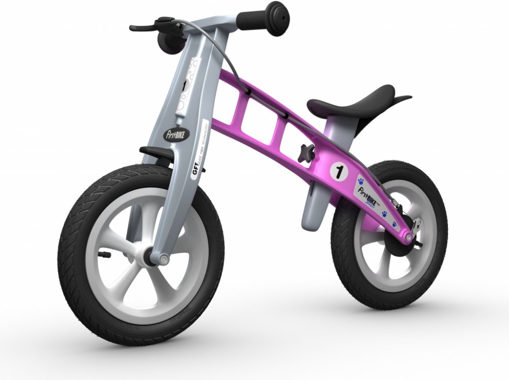 Je vybaveno nafukovacími pneumatikami s jemnějším vzorkem připomínajícími pneumatiky trekového kola, takže se hodí na silnici a do lehčího terénu. Odrážedlo je až 3x lehčí než běžné šlapací kolo. Rodinné procházky mohou být navíc mnohem delší, protože děti na bezpedálovém kole ujedou kilometry, a to i v lehkém terénu. Největší předností odrážedla First BIKE je revoluční rám ze sklolaminátového polyamidu. Vznikl tak vysoce odolný výrobek s nízkou váhou, dlouhou životností, pružností a zároveň s extrémní pevností. First BIKE při jízdě absorbuje tvrdé nárazy a dopřeje vašemu dítěti maximálně pohodlnou jízdu. Součástí je také velmi jemná ruční brzda. First BIKE má bubnovou zadní brzdu, nikoli vystupující čelisťovou. Ostatně na něm nenaleznete nic, oč by se vaše dítě mohlo poranit.